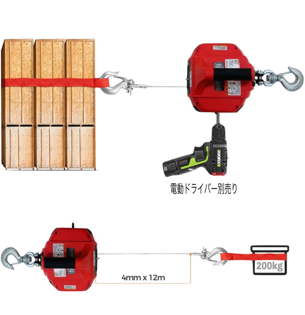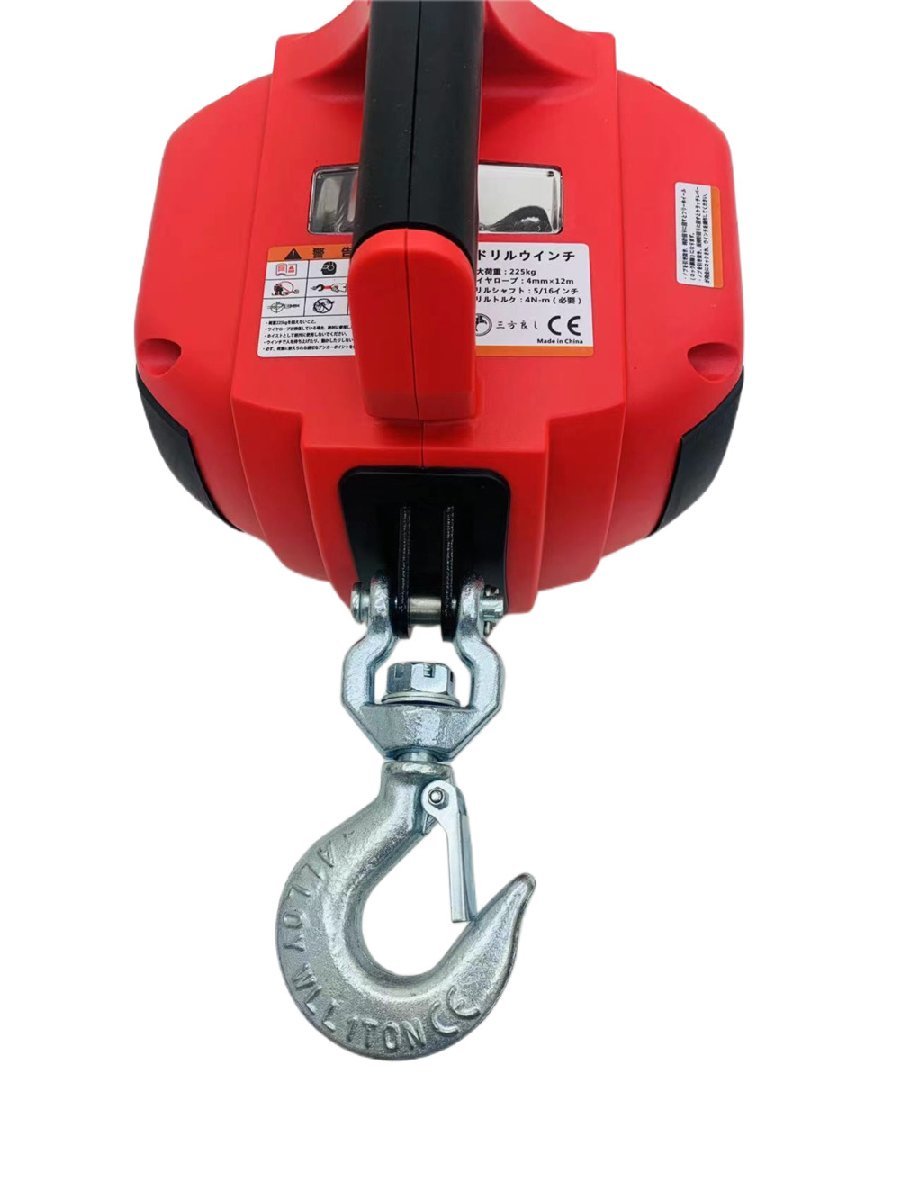 セール 三方良し半年保証付 ドリルウインチ 225kg ワイヤーロープ12m付き 手持ちポータブルドリルウィンチ 牽引ワイヤー 引っ張る ホイスト