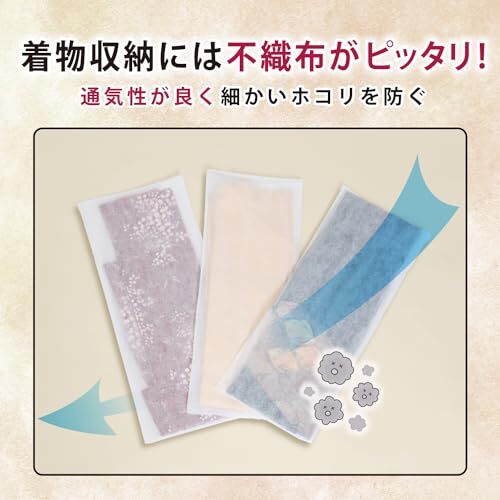 【通気性に優れた不織布製の着物収納カバー】:通気性が良く湿気やにおいのこもりにくい不織布製の着物収納カバー。