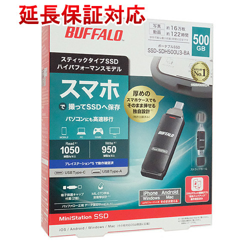 | BUFFALO スティック型SSD SSD-SDH500U3-BA ブラック | |
