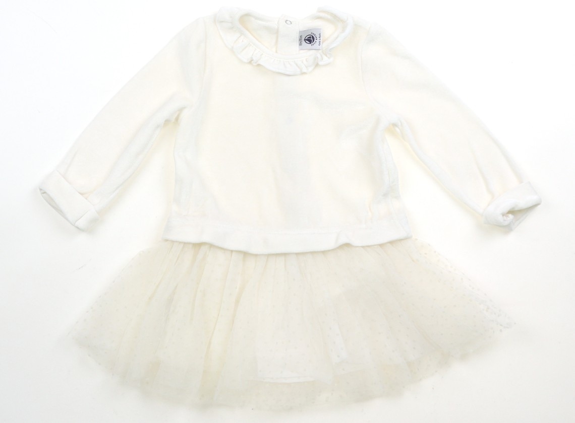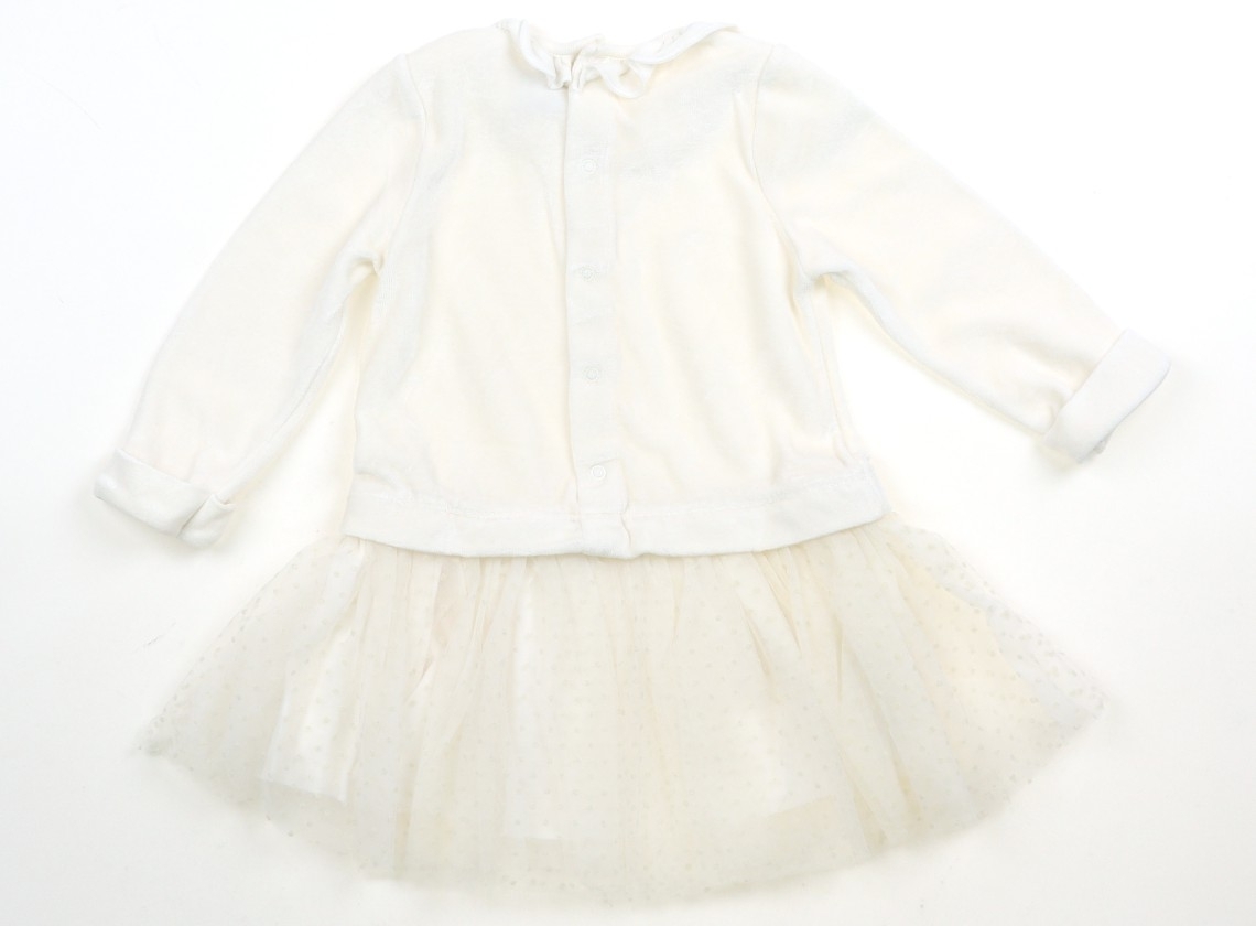 実際のサイズ表記は18m/81cmです。パイルベロアとチュールの生地です。後ろボタンあり。目立った汚れのない良品です。