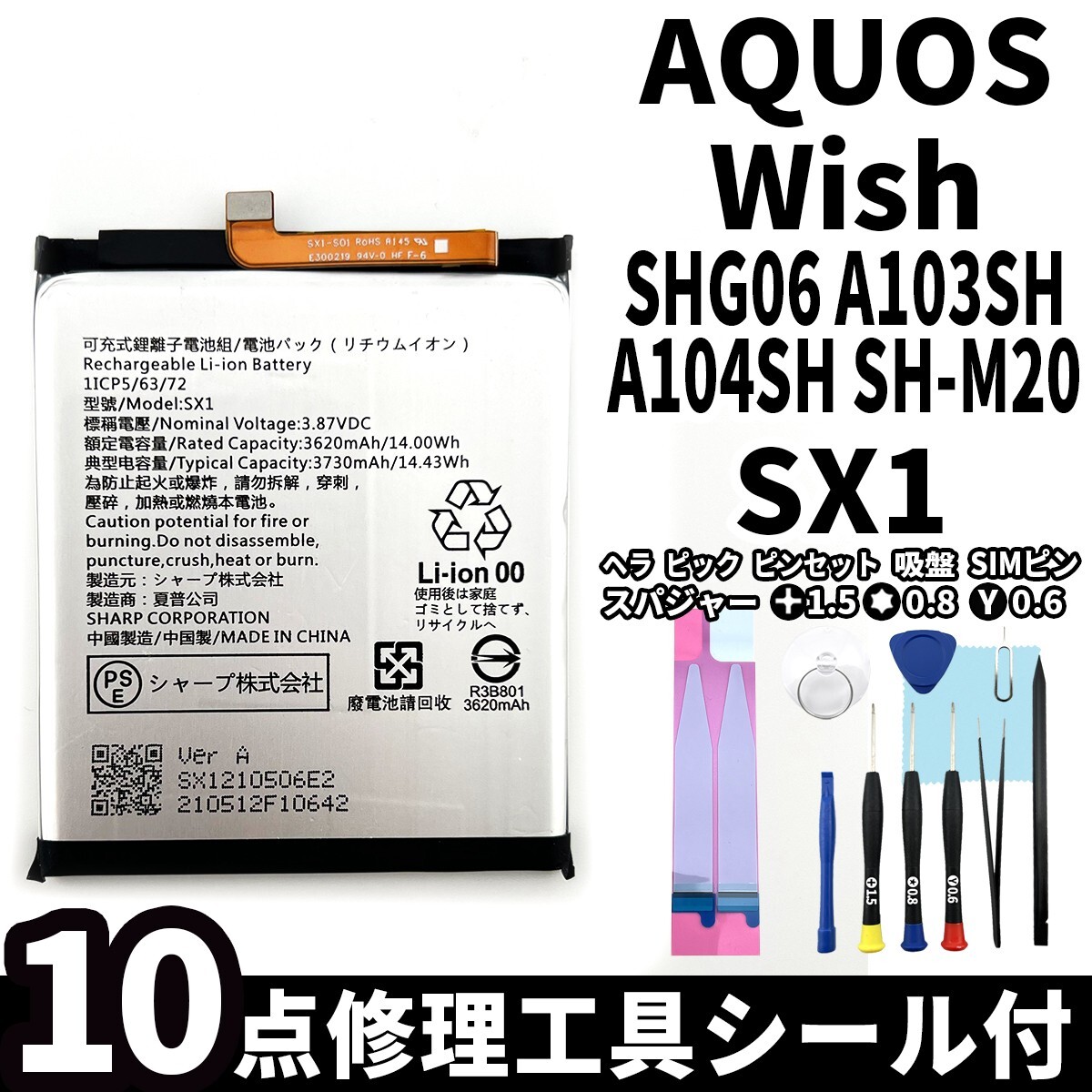 ★ AQUOS Wish バッテリー交換 SHG06 A103SH A104SH SH-M20 SX1 電池パック交換キット battery repair 電池交換専用両面テープ 修理工具付セット ★