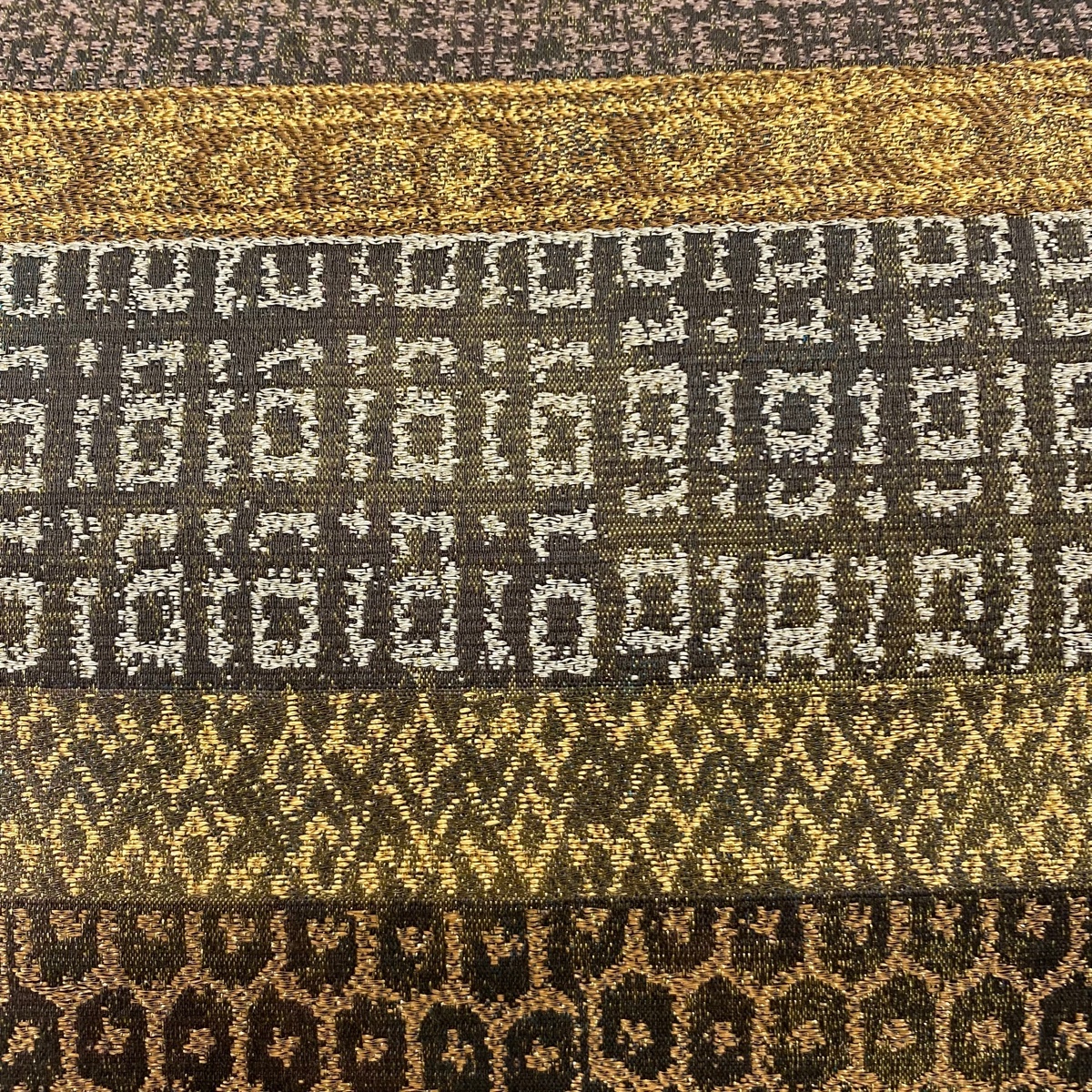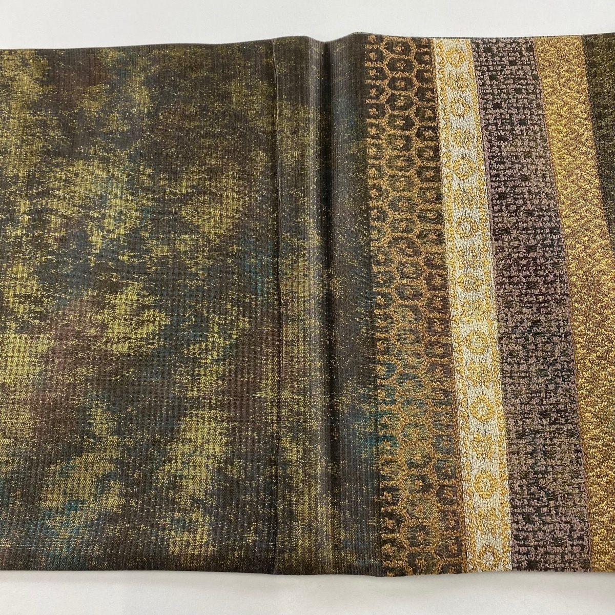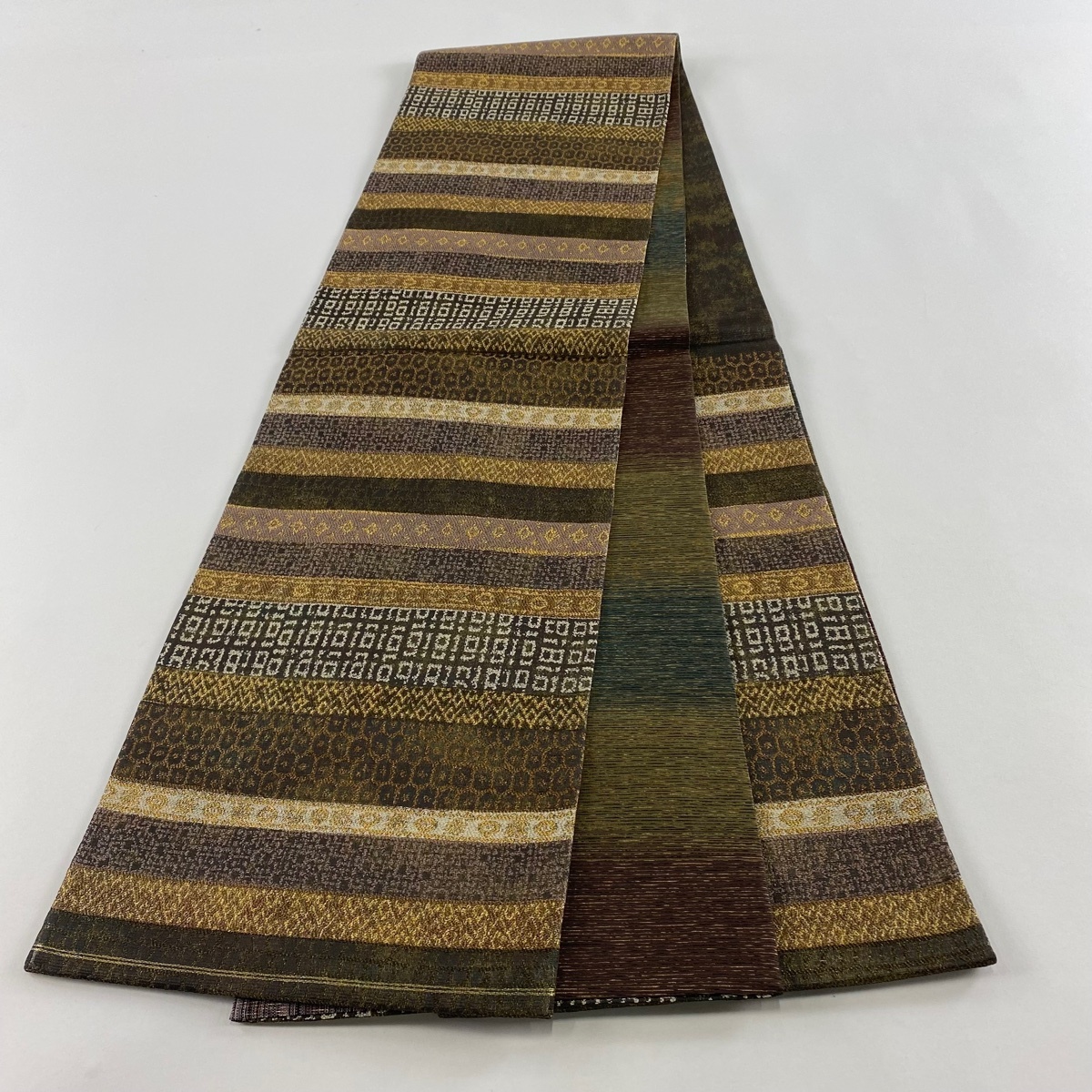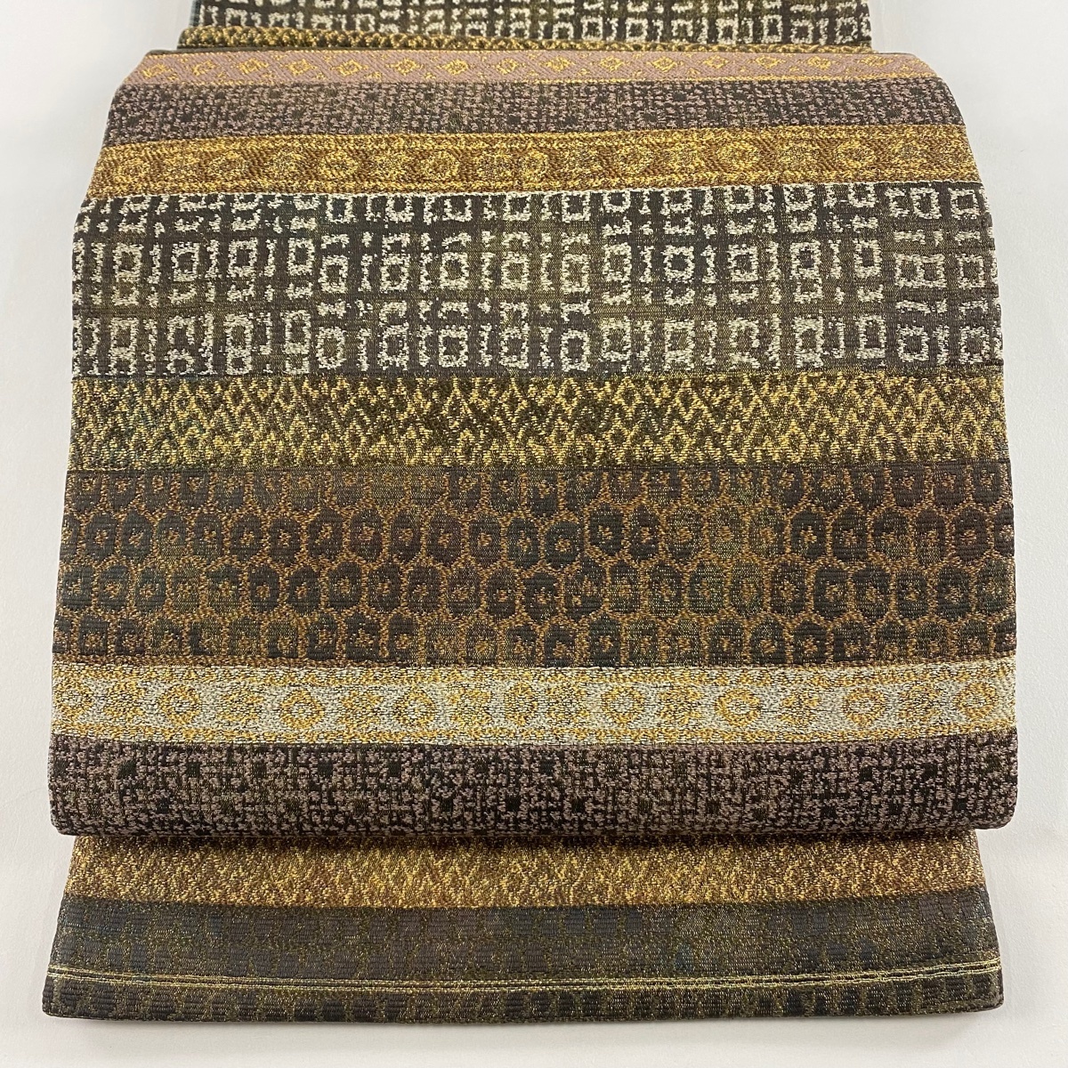 | 袋帯 美品 名品 縞 亀甲 箔 灰茶 六通 正絹 【中古】 |