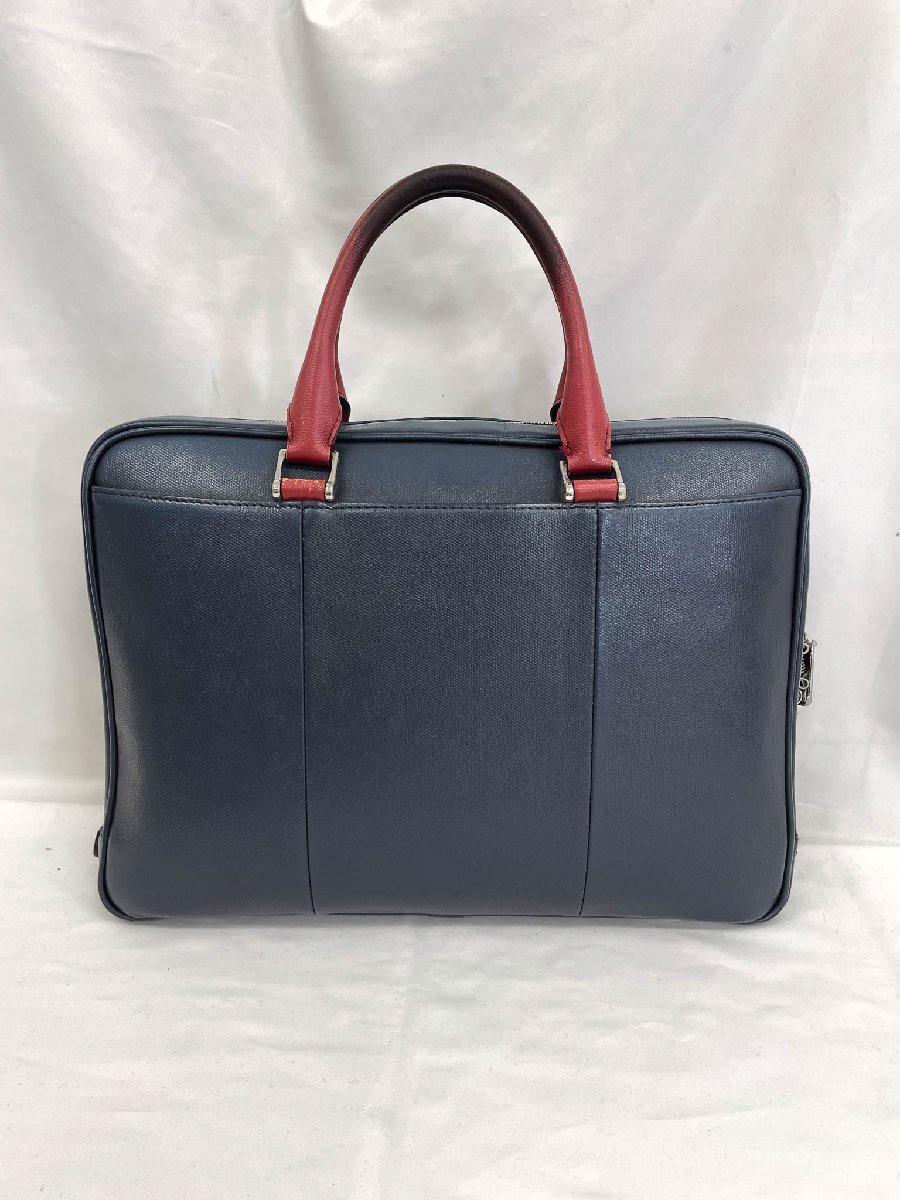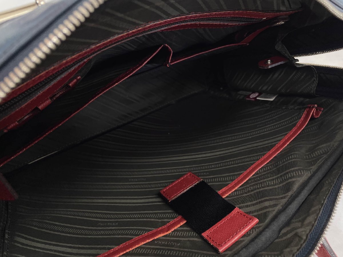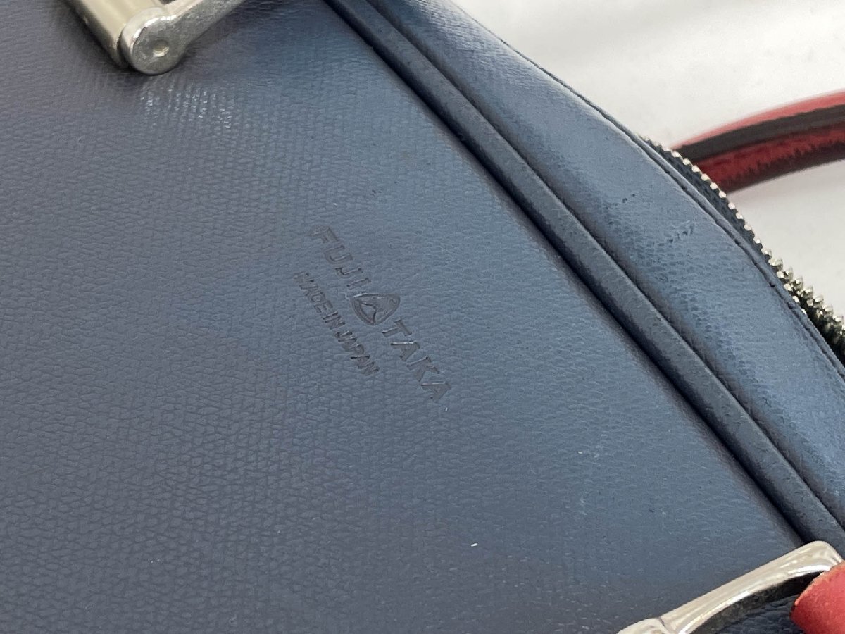 【フジタカ FUJITAKA】 バイカラー ラウンドファスナー レザー ブリーフケース 書類かばん(メンズ)青みのあるネイビー×レッド ◇5MG3151◇