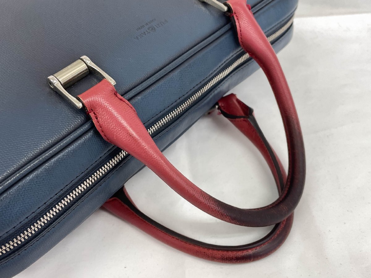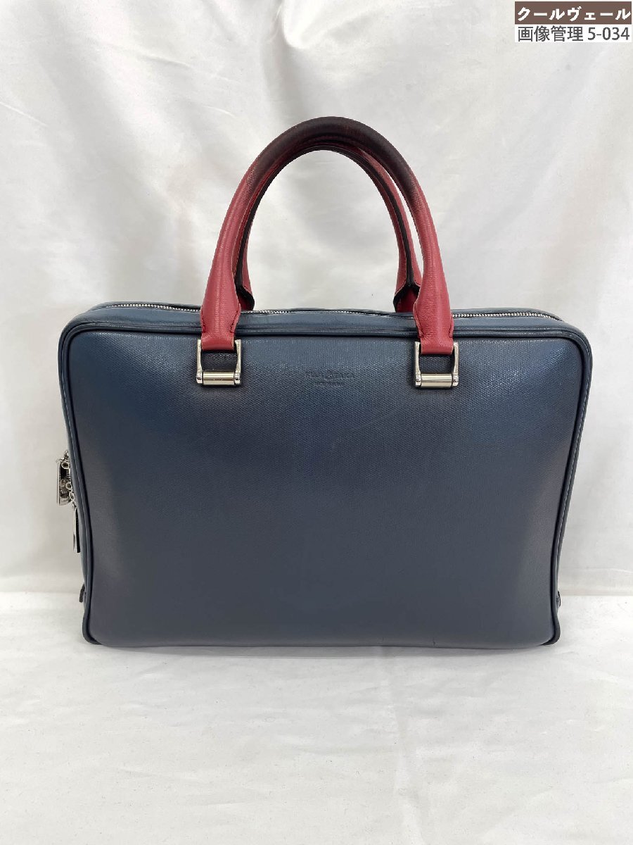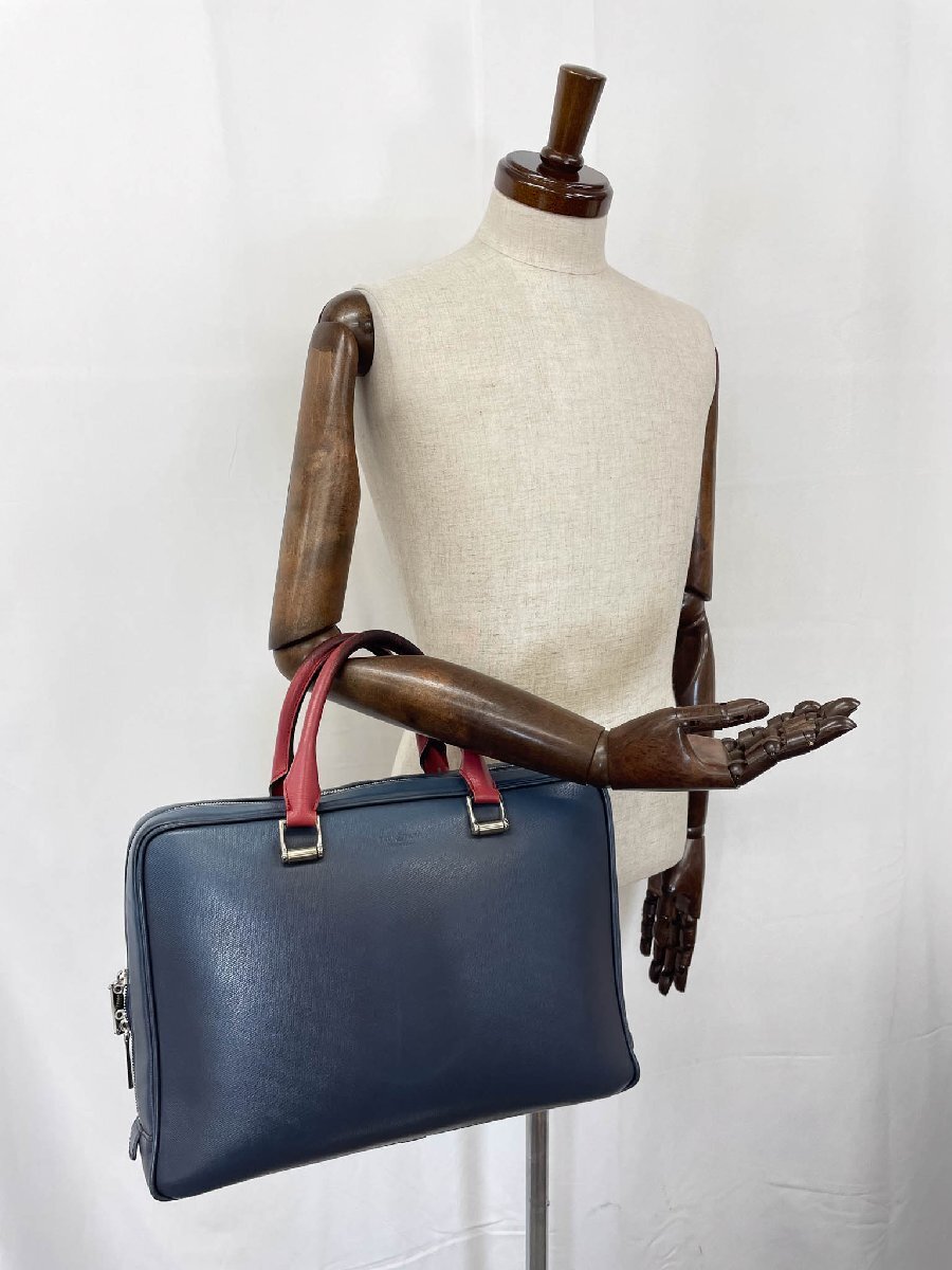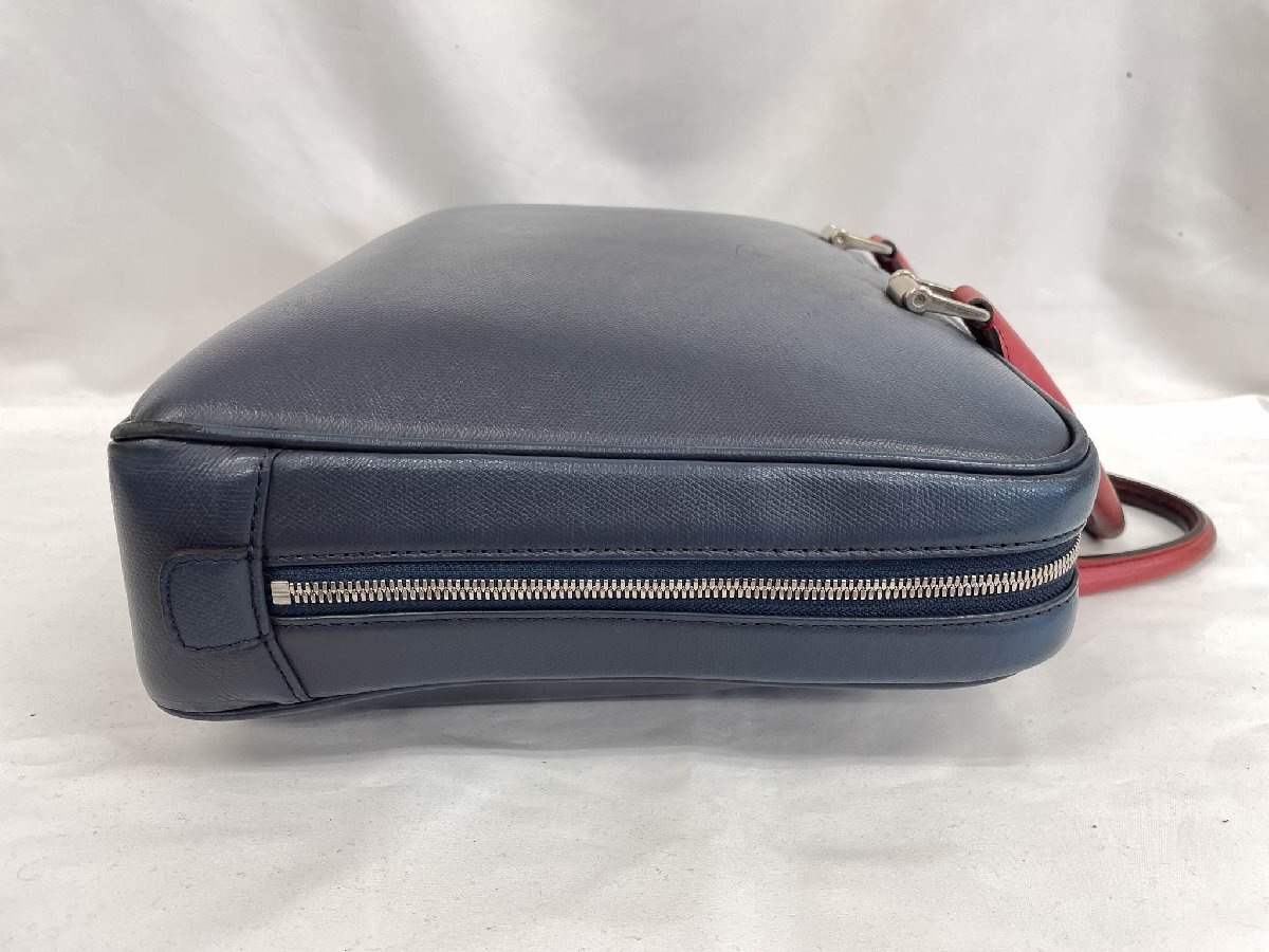 【フジタカ FUJITAKA】 バイカラー ラウンドファスナー レザー ブリーフケース 書類かばん(メンズ)青みのあるネイビー×レッド ◇5MG3151◇