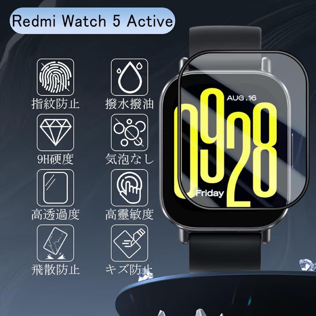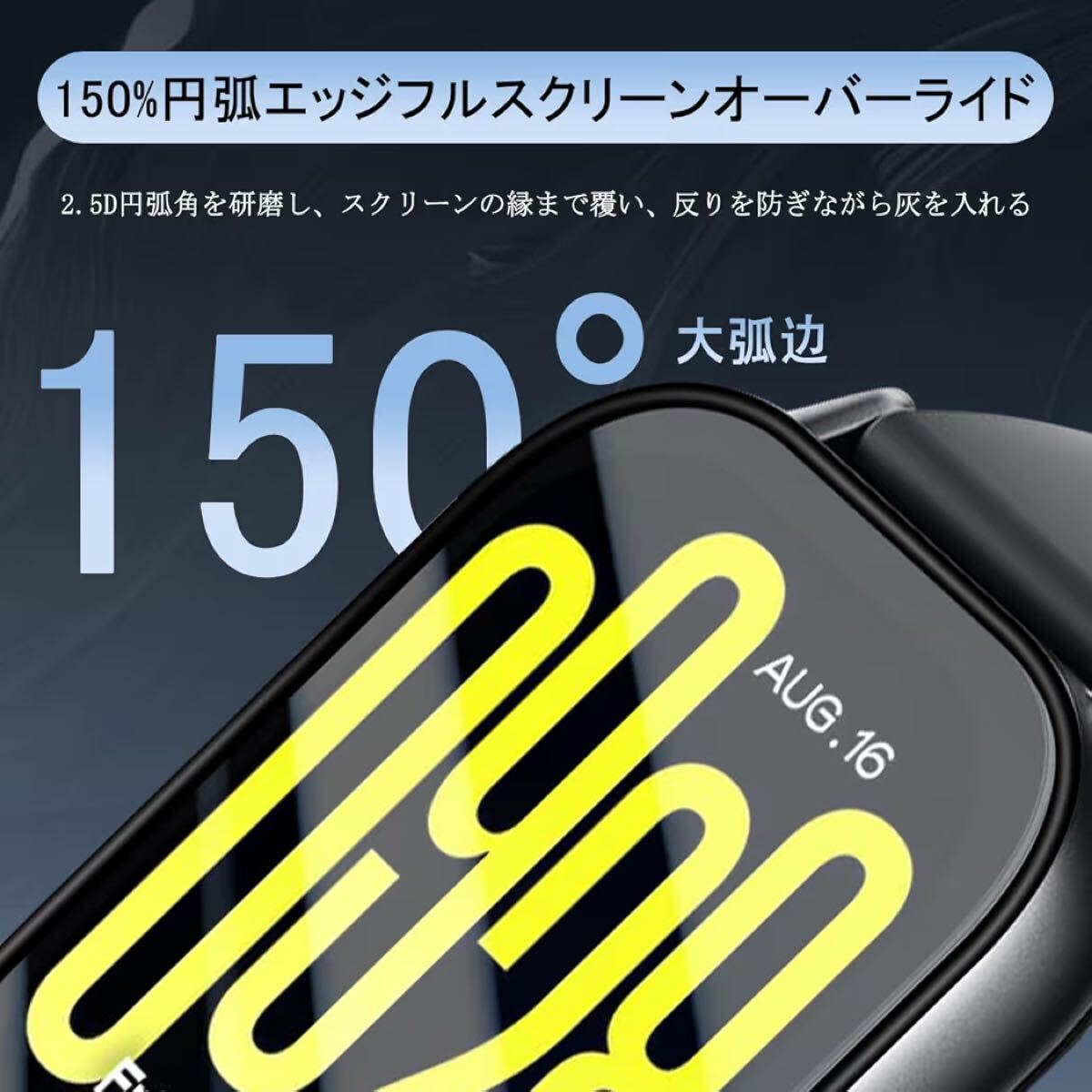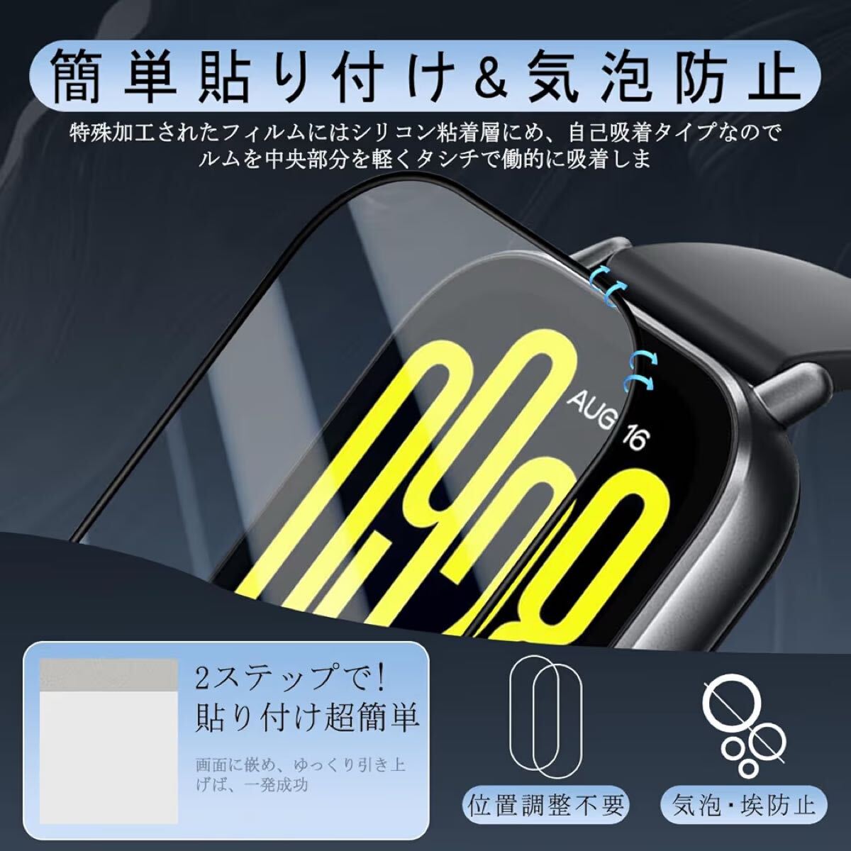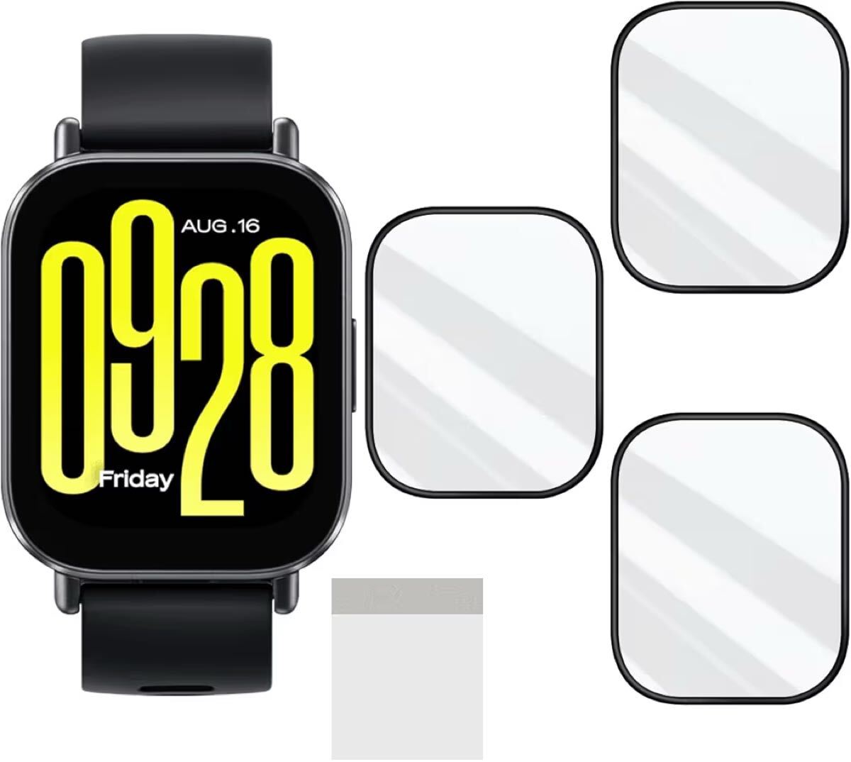 JCJCLY【3枚セット】対応 Redmi Watch 5 Active 保護フィルム PET複合材 炭素繊維素材製 3D曲面カバー「硬度9H 耐衝撃 衝撃吸収 高透過率 高感度 ラウンドエッジ加工 指紋防止 貼り付け簡単 自動吸着 気泡防止 」JCRW5A3B