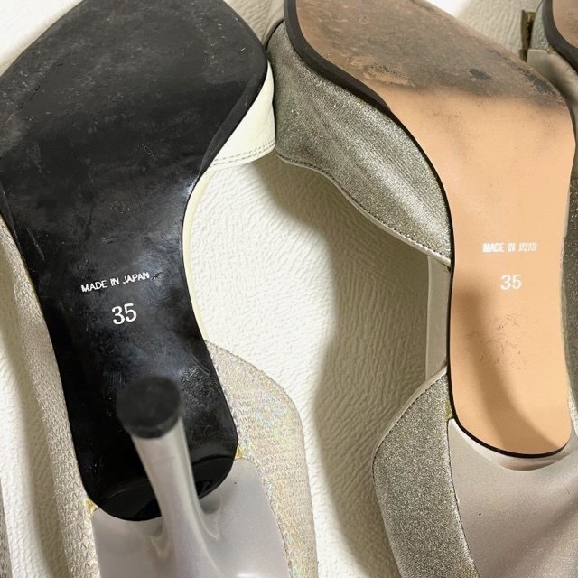 | 商品説明 お呼ばれにぴったりな華やかなパンプス2足セットです。 サイズ35、日本のサイズで約22.5センチです。 詳細 ●サイズ:約22.5センチ ヒール高さ5センチ 幅8センチ ●ランク:Eランク ●コンディション:擦れ、汚れ多々あり。 |