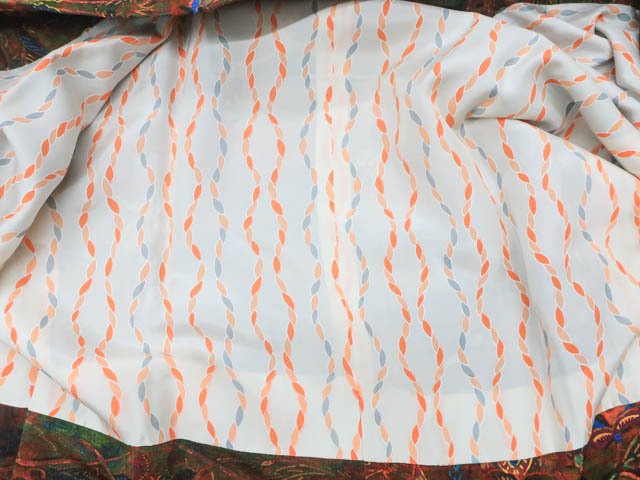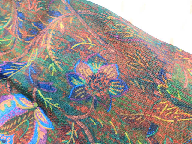 リサイクル商品ではございますが、大変良い状態のお品です。 地色は、赤茶・緑色です。 1枚目の画像が近いお色かと思われます。 素材は正絹です。 |