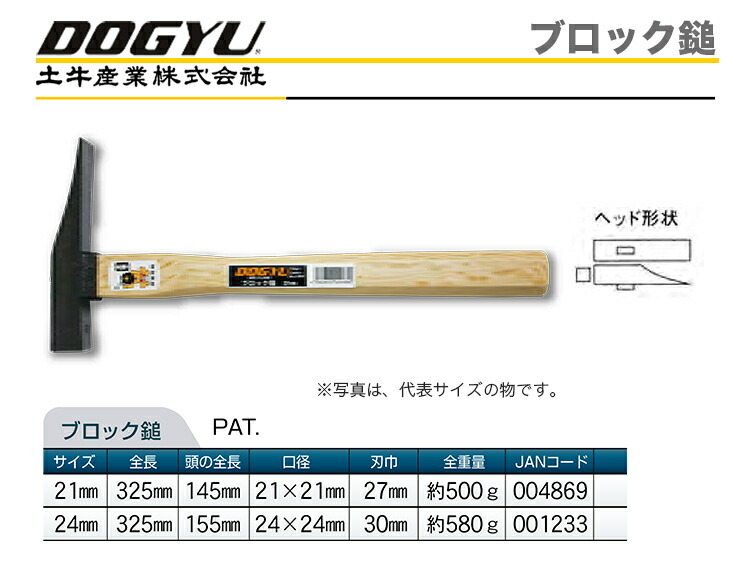 〈土牛産業〉 ブロック鎚 24mm JAN:4962819001233