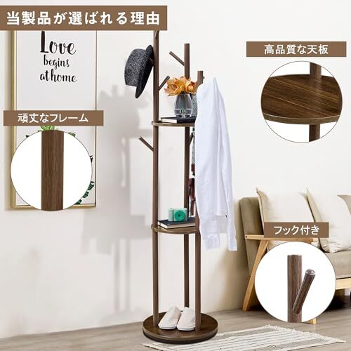 【多機能収納ラック】このコートラックは、帽子やコートだけでなく、バッグ、アクセサリー、小物まで収納できる多機能なデザインです。部屋をすっきりさせ、効率的な収納を実現します。