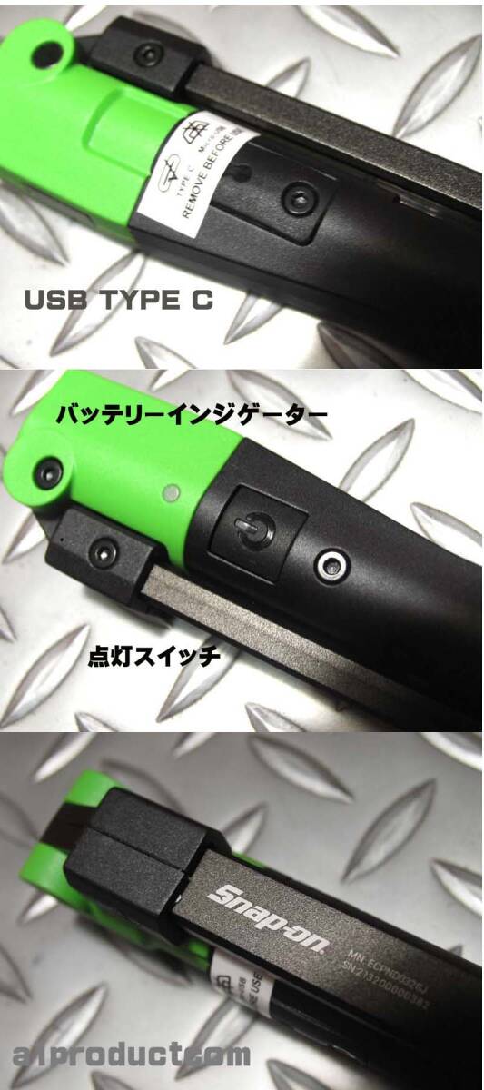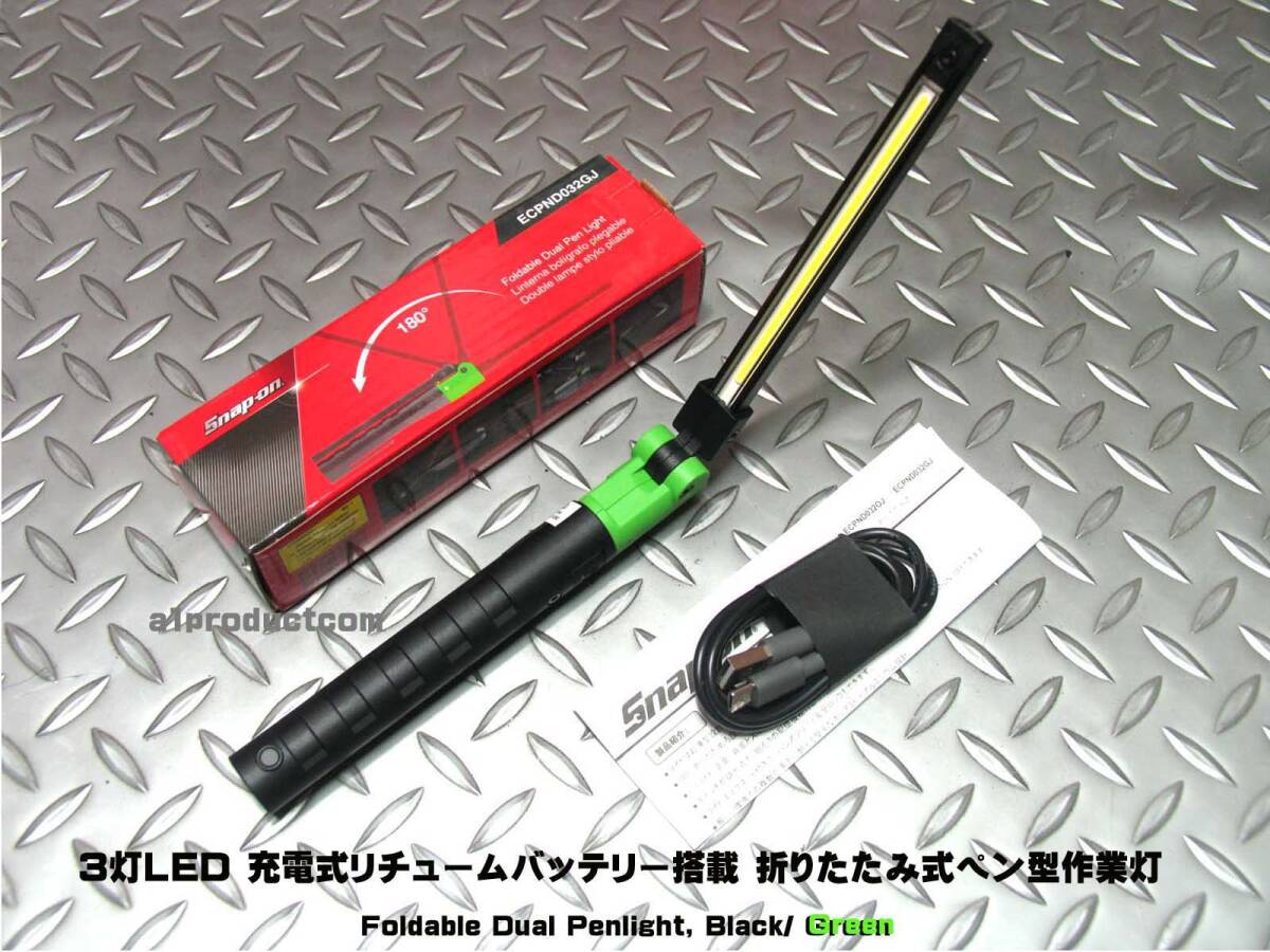 スナップオン(Snap-on) 充電式リチュームバッテリー3灯LED搭載 ペン型ライト ECPND032GJ (Green)新品未使用