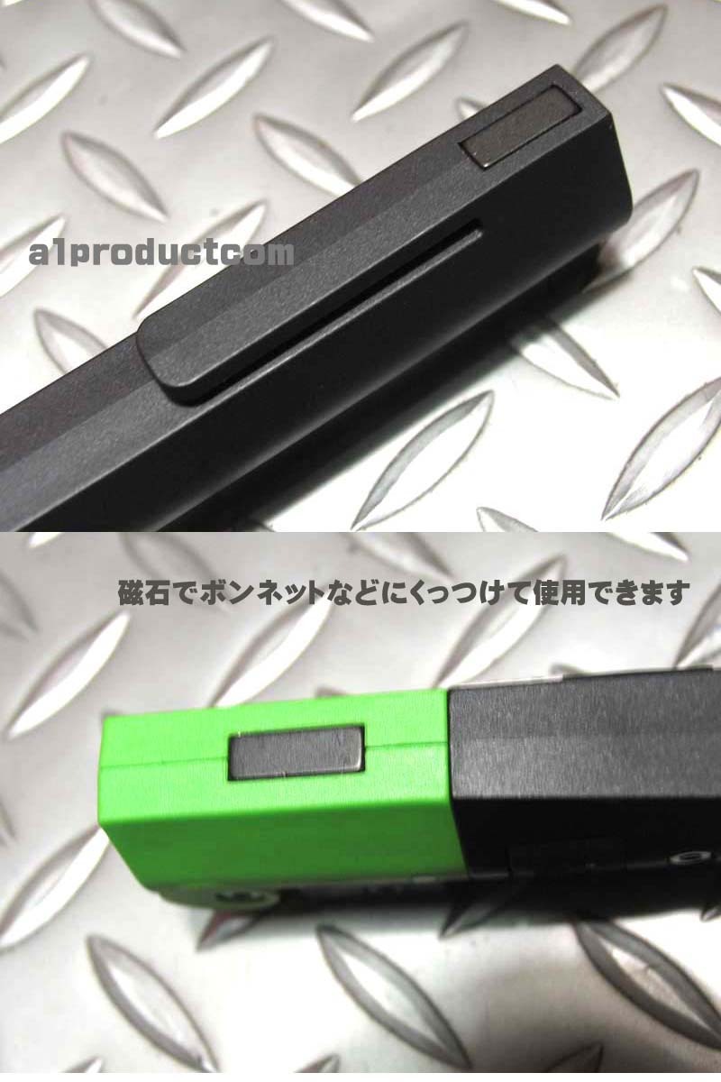 ピボットスイングアームで角度調整が自在にできて、底面と背面にマグネットが付いているので、作業時はエンジンフードなどに張り付けて使えるので両手が空きます!。また先端のスポットLEDライトが遠い距離を照らすことができるコンパクトなポケットサイズの作業灯です!