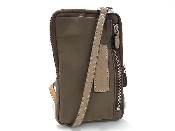 1円 ■美品■ Felisi フェリージ ナイロン×レザー クロスボディ スマホショルダー ショルダーバッグ 斜め掛け ポーチ ブラウン系 FU4979