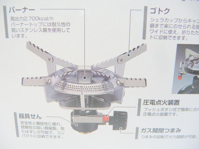 ☆展示品 未使用 CAPTAIN STAG/キャプテンスタッグ M-7900 オーリック 小型ガスバーナーコンロ<圧電点火装置付>ケース付(A11062)