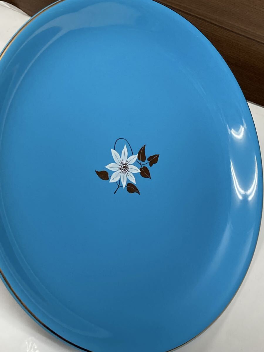 未使用 ♪ たち吉 橘吉 大皿 1枚 + 銘々皿 5枚 セット ブルー 金彩 レンジOK 花柄 取り皿