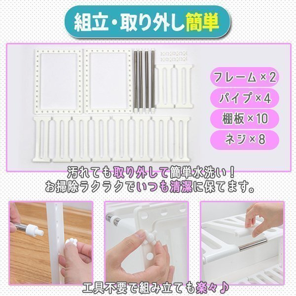 棚板が5枚に分かれているので排水管をよけて簡単に設置ができます。