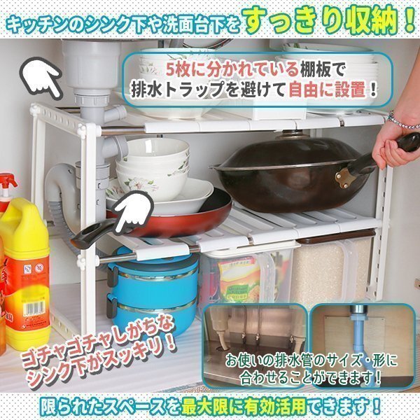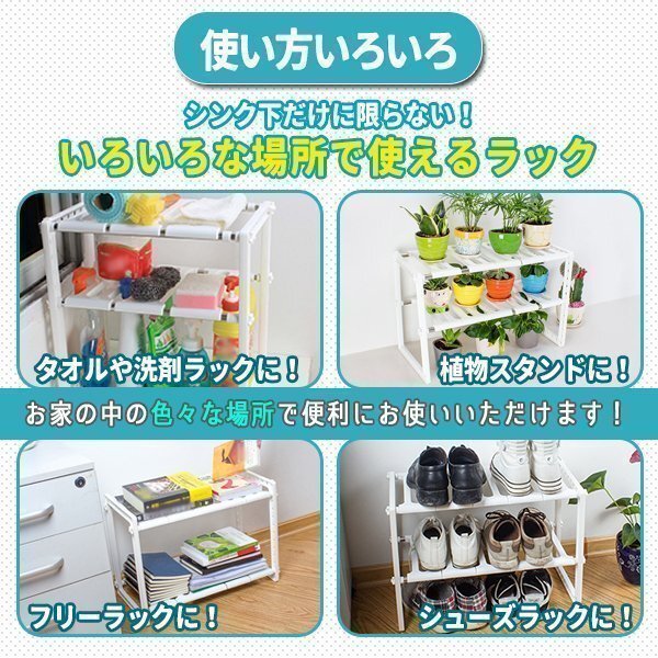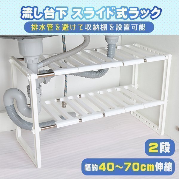 シンク下 収納ラック 伸縮式 キッチン 2段 スライド 高さ調節 簡単組立 流し台下 洗面台下 収納ラック