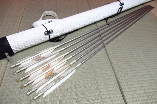 弓道 弓矢 EASTON XX75 1913 イーストン 白鷲? 6本 全長約95cm 重量25g 矢筒付き 管理7KH1105C-Dnaga