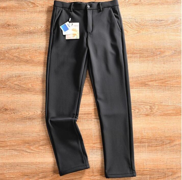 新入荷3XL ブラック 新品 ストレートパンツ ウール混 スラックス 秋冬 防寒 厚手 ノーアイロン ストレッチ メンズ ビジネス カジュアル