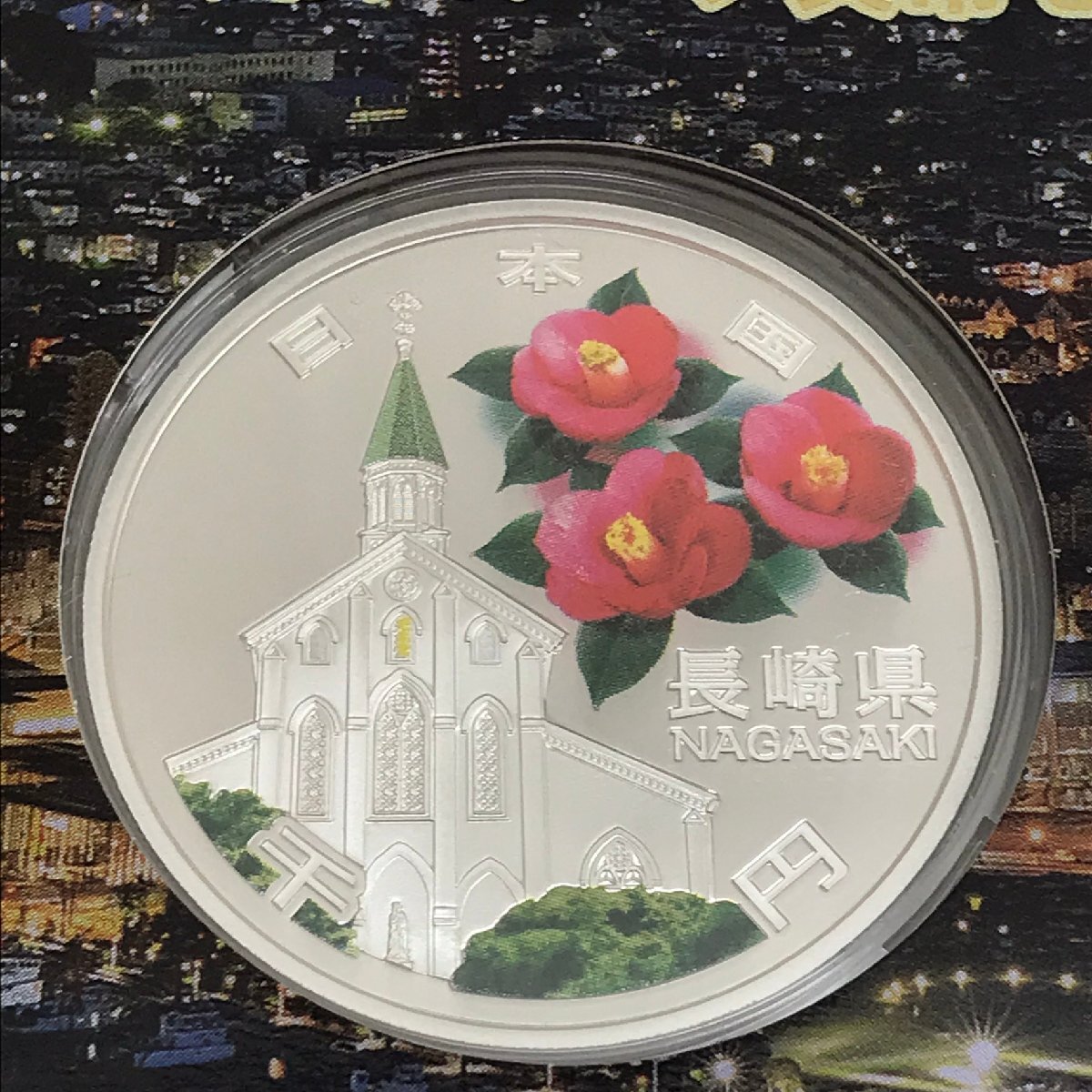 ★中古極美品 地方自治法施行六十周年記念 千円銀貨幣プルーフ貨幣 長崎県 大浦天主堂と椿 純銀 記念硬貨 平成27年刻印 質屋出品★