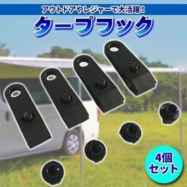 ★タープフック テントクリップ アウトドア BBQ キャンプ レジャー カーサイドタープ ハイエース 4個セット オート キャンプ ジョイント