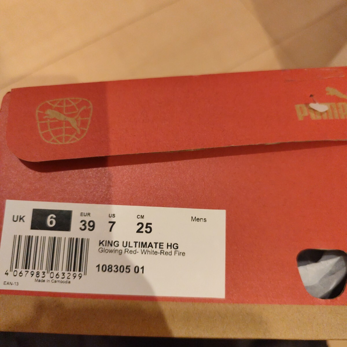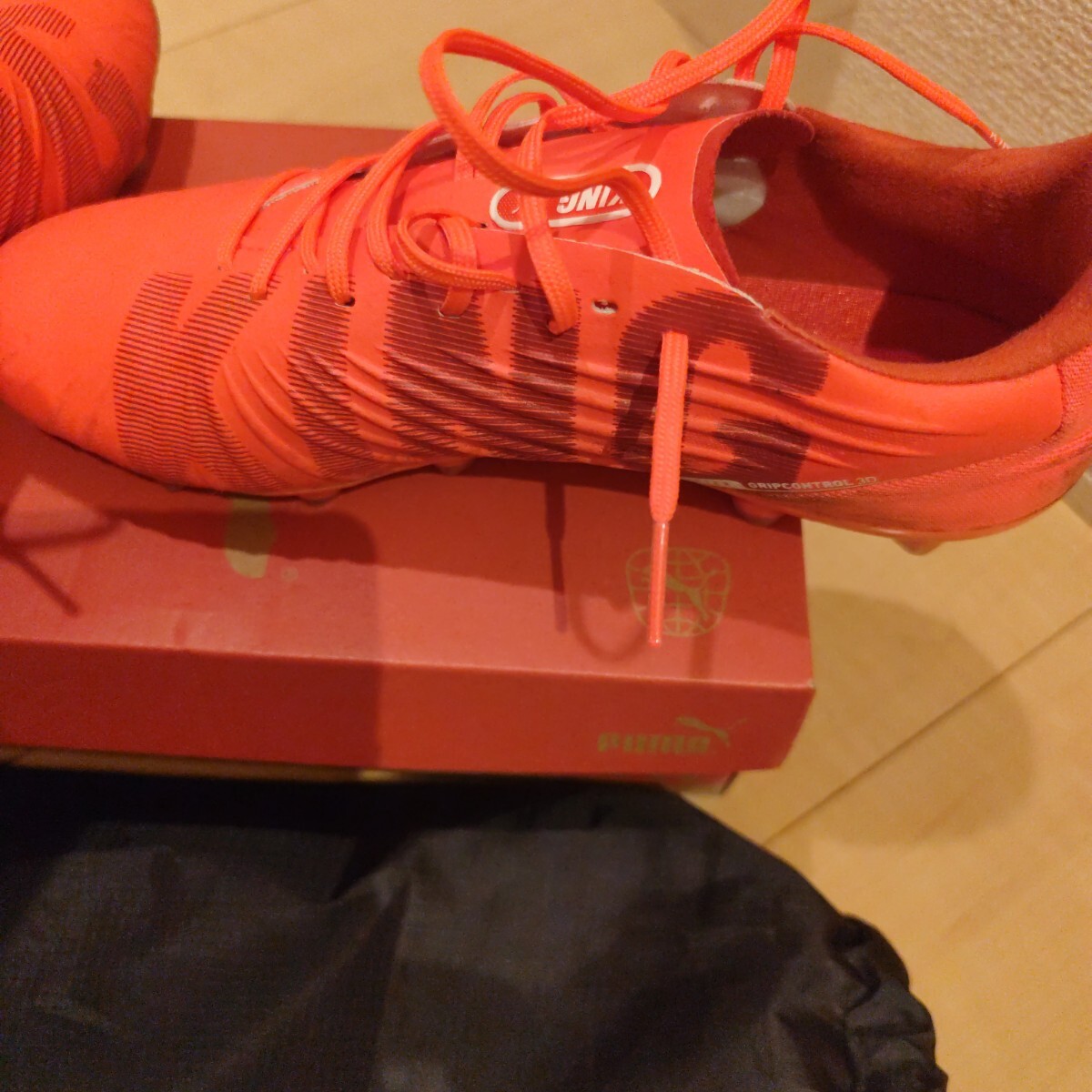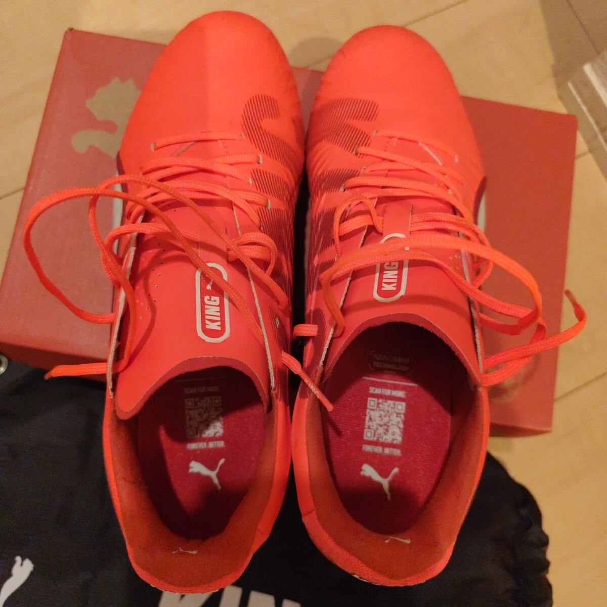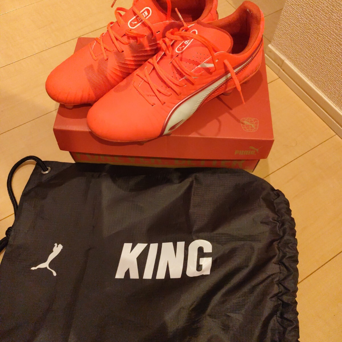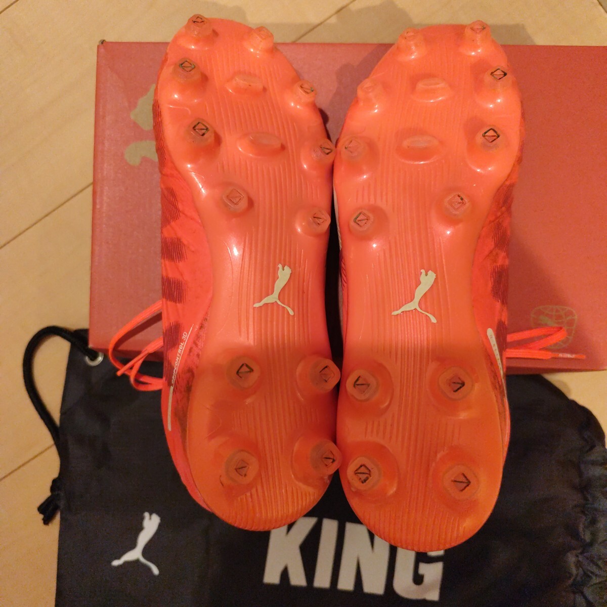 プーマキングアルティメットです。全グランド対応スパイクです。定価¥23100のトップモデルです。天然芝グランドで30分履きましたが足に合わず出品しました。ポイント擦れも全くなく、かかと付近に少し汚れがある程度の新品に近い商品です。204グラムと軽量です。