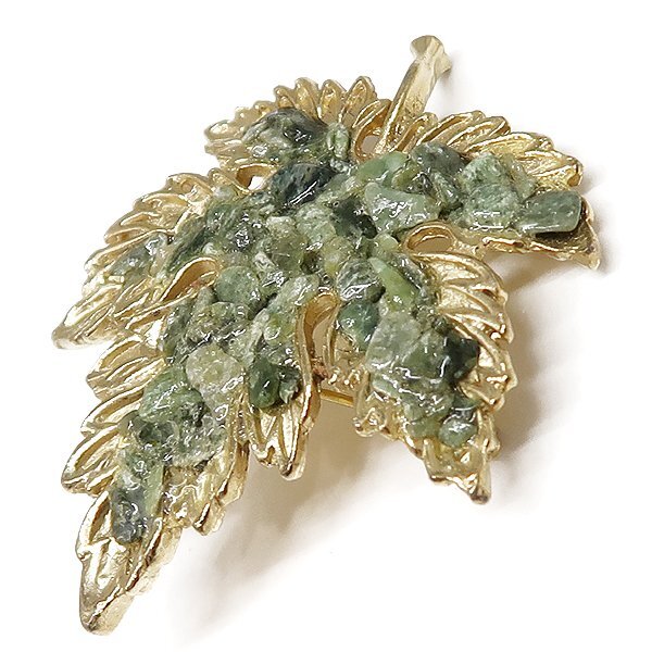商品状態 ヴィンテージ 天然石 リーフブローチ