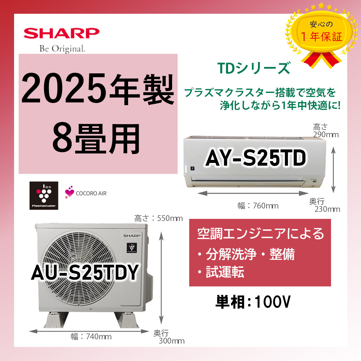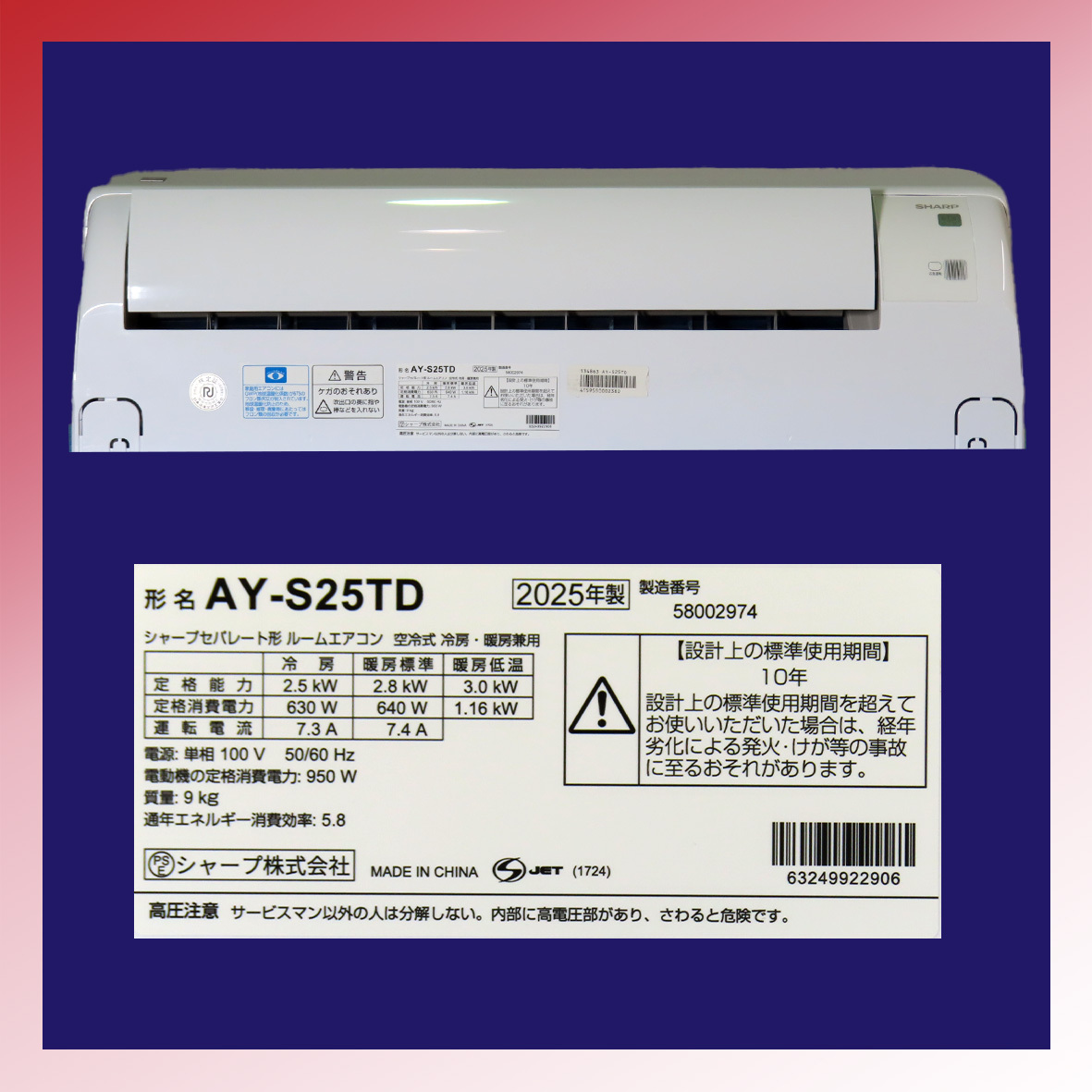 | 保証付!シャープ☆2025年製ルームエアコン☆プラズマクラスター8畳☆S170 | |