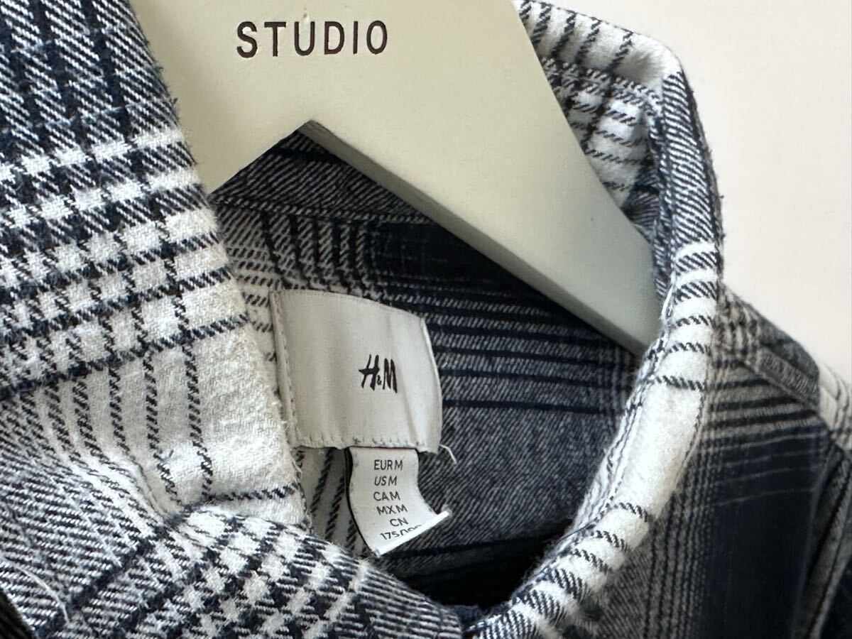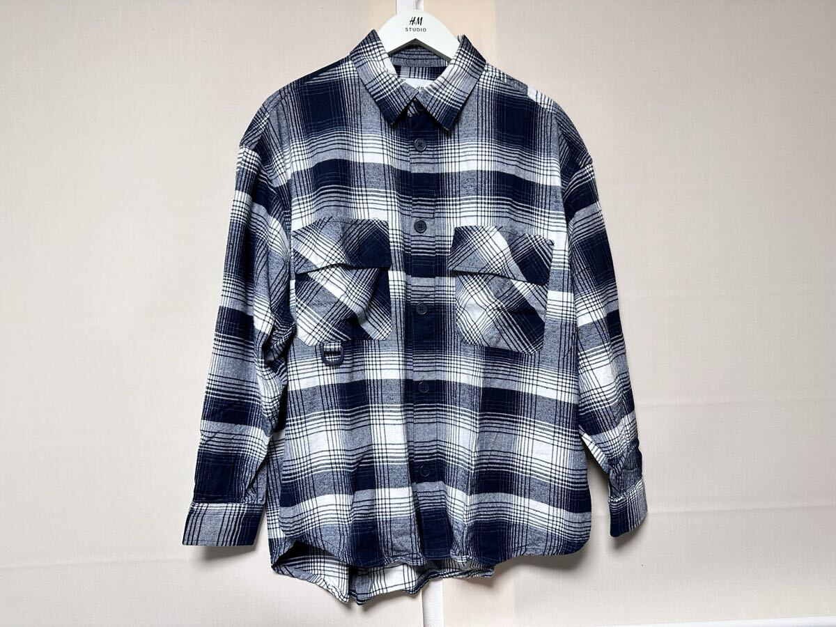 *美品* Mサイズ H&M オーバーサイズ チェックシャツ チェック ブルー 長袖 ネルシャツ オシャレ キャンプ 釣り フィッシング アウトドアです。