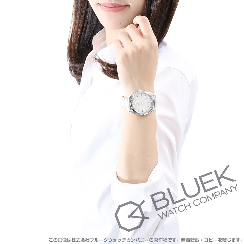 | 150m防水ケースとダイヤルの佇まいに高級感溢れるアクアテラは、オメガのラグジュアリースポーツモデル。女性用には珍しい15000ガウスの高耐磁性能で磁気を寄せつけないMETAS認定マスタークロノメーターコーアクシャルキャリバー8800を搭載します。中でも38ミリケース&3連ブレス着け心地なめらかなこのモデルは、手元を爽やかに彩るオールシルバーデザインも魅力。6時位置に日付窓、ヨットの船体をかたどった18Kホワイトゴールド製インデックスを備えたオパリンシルバーダイヤルは波模様が浮き彫りされて美しく、ケースバックからは機械の意匠が鑑賞できてメカ好き初心者から上級者までおすすめです。 ※METASとはスイス連邦計量・認定局の略称。最高水準を誇る時計だけがマスタークロノメーターの称号を受けられます。 |