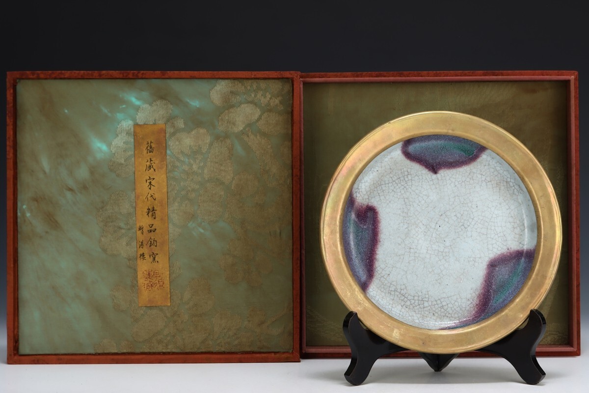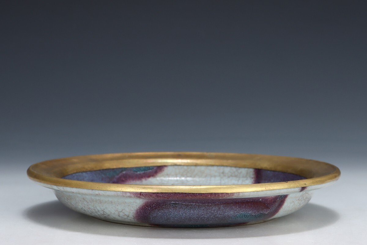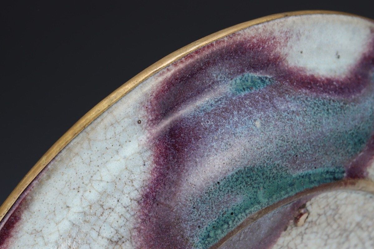 「宋 鈞窯 陶磁器 紫紅斑 折沿盤」染付 置物 擺件 古賞物 中国古美術 旧蔵出