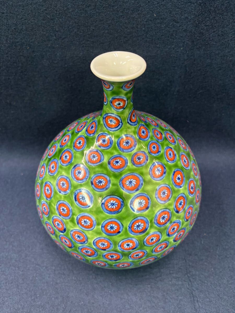 r7110121 有田焼 源右衛門窯 染錦 丸花紋  花瓶  置物  飾壷
