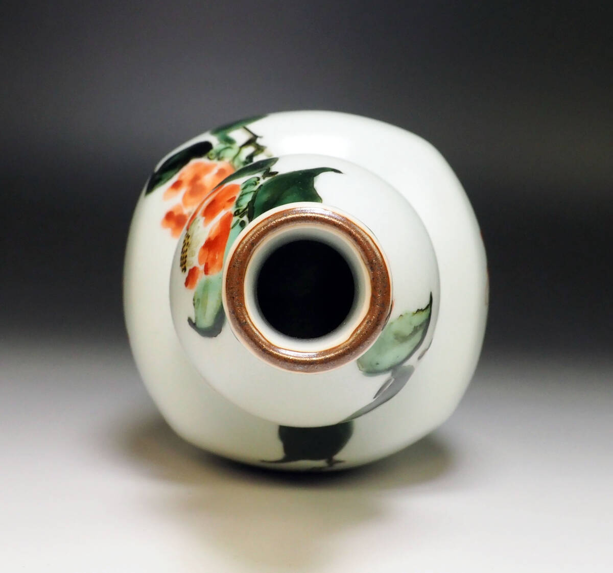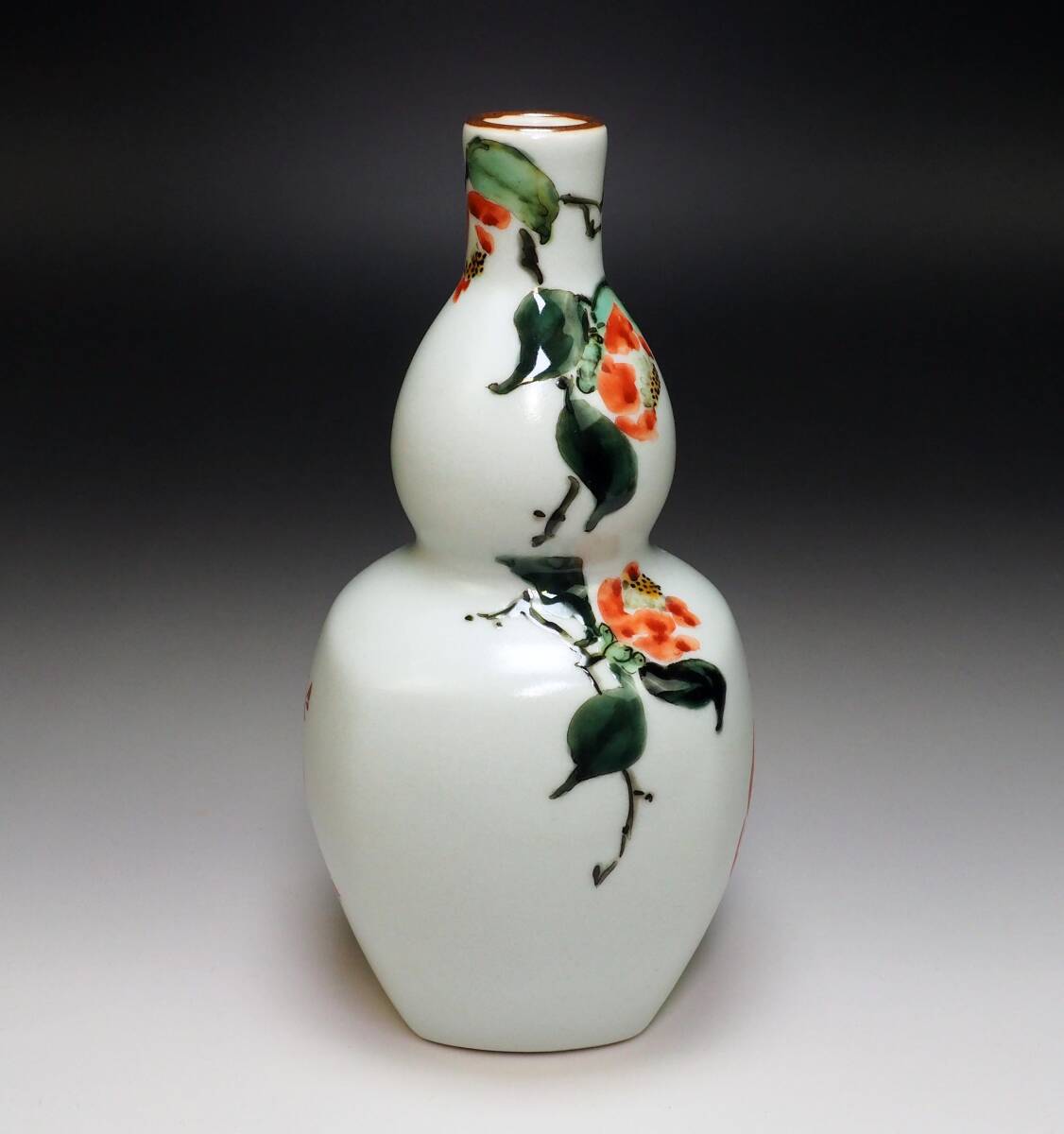 ![]() 色絵磁器の人間国宝、藤本能道の「色絵椿と童女図瓢型徳利」です。 雪白釉のようなマットな素地に綺麗に描かれた作品です。 サイズ:約 径 9.3cm 高 17.5cm 共箱つき 作品状態:外傷キズは無く美品です。(目視確認です。) こちらの作品は真作保証の安心頂ける作品であることをお約束いたします。 不明な点は、入札前に質問等でご確認下さい。 藤本 能道(ふじもと よしみち) 1919 - 1992 東京都出身 東京美術学校工芸科卒業。1931年文部省工芸技術講習所に入り、1932年加藤土師萌に師事。1956年日本陶磁協会賞受賞。1960年より伝統的な作品づくりを進め、1938年には富本憲吉の助手を務めながら、九谷焼系の色絵磁器の技法を習得する。巨大な存在である2人の師の模倣から脱却しようと、前衛陶芸に傾倒し、流政行や八木一夫と交流。1950年代は走泥社やモダンアート協会を活動の場とする。その関心は次第にオブジェから釉や絵付けへと移行し、鉄釉彩や赤絵の研究を始める。1965年日本工芸会東京支部展受賞、同年ジュネーブ国際陶芸展で銀賞。1970年東京芸術大学教授となり、1985年~ 89年同校学長をつとめる。1986年人間国宝に認定される。抜群の絵画的な描写力には定評があり、器の表面に花鳥風月の絵つけをした色絵磁器の世界に独自の境地を切り開いて、色絵の器づくりの第一人者であった。 | |||