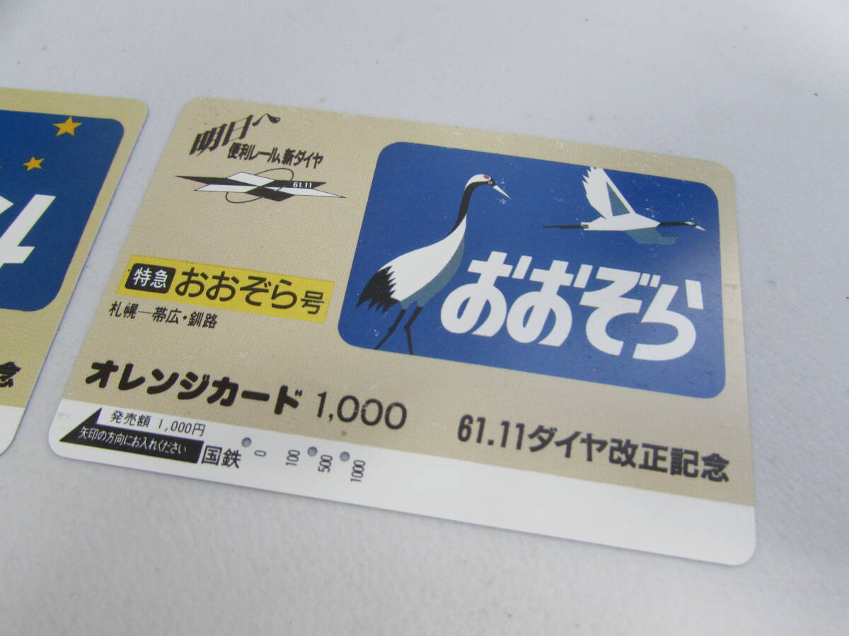 | 使用済み 穴あき オレンジカード 1000円×2枚 国鉄 明日へ便利レール、新ダイヤ 61.11ダイヤ改正記念 特急 北斗号 おおぞら号 ⑥ |