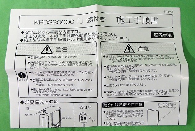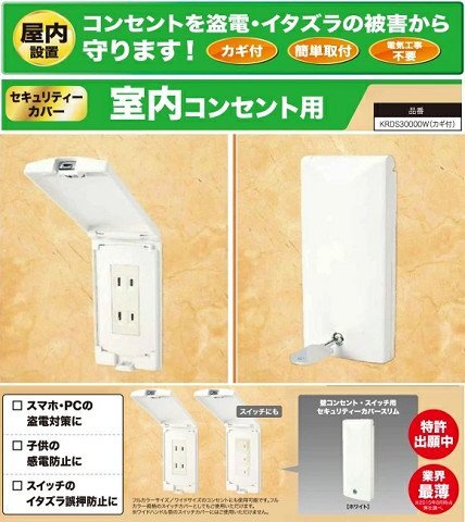 未使用 3点セット 盗電防止 セキュリティーカバー スリム 鍵付き KRDS30000W 壁コンセント スイッチ用 キタリア 送料430円