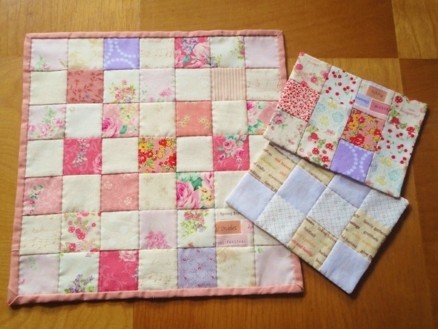 パッチワーク★優しいピンク花柄のフリーマット 3枚セット★ハンドメイド