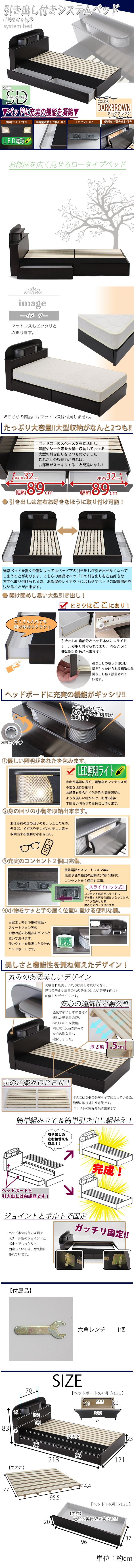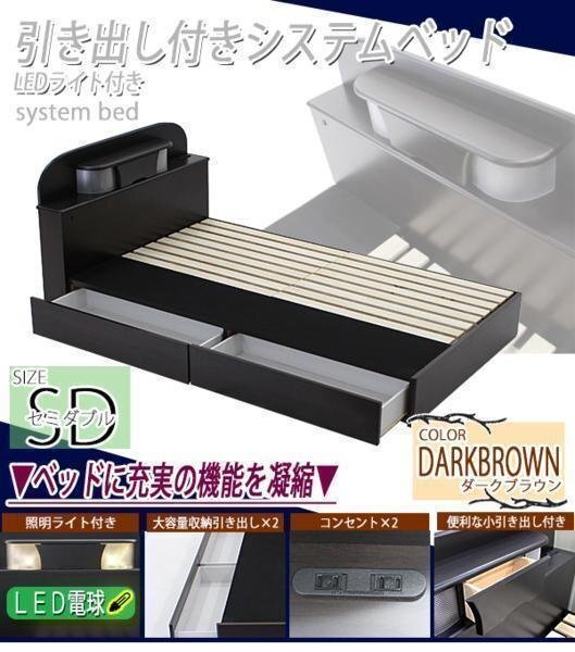 | 商品名 | 引き出し付きシステムベッド ベッドフレーム ライト付き セミダブル ダークブラウン 茶 ロータイプベッド システムベッド 低床ベッド すのこベッド すのこ ベッド フレーム 木製 引き出し 照明 LED コンセント付き 収納 収納ベッド マルチ 多機能 桐 lis03sdbr |