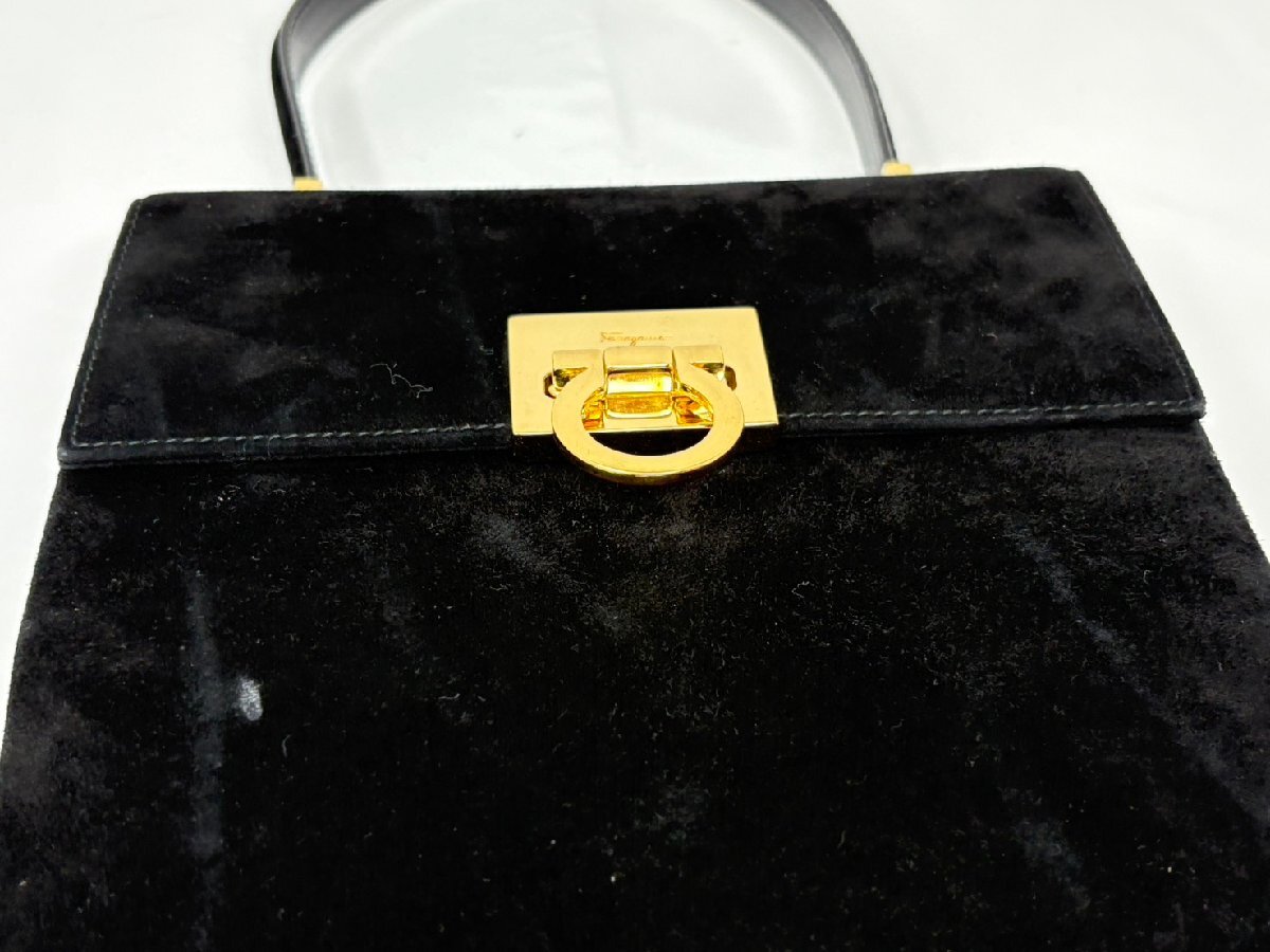 ◆Salvatore Ferragamo フェラガモ ハンドバッグ スエード 黒系 ブラック AQ-21 8658 ショルダー欠品 中古 現状◆19226