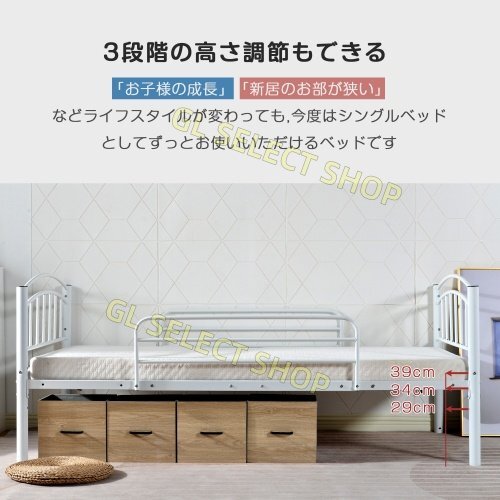 • POINT2 安全性と使いやすさのコダワリ 1側面で支えてずり落ちを防し 上段には、睡眠中の転落を防ぐサイドフレームが付いています、高さ34cm横幅100cmの安心設計、布団のずり落ちや寝返りを支えてくれます。