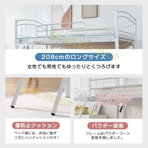 【新品】  ホワイト ロフトベッド シングル パイプベッド