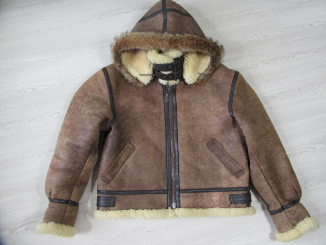 フライトジャケット TYPE B-3  レザージャケット ムートン パーカー フード ブラウン サイズ L