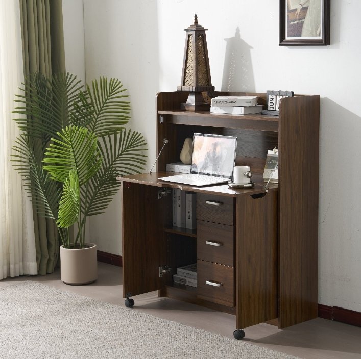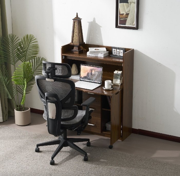 • 2.【折り畳み可能なデザイン】デスクは非常にコンパクトで、幅わずか30cmのスリムデザインです。使わないときはテーブルを折りたたんでコンパクトに収納可能で、部屋の隅に置いて邪魔になりません。