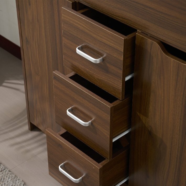 • 4.【収納スペースたっぷり】優れた収納機能が特徴です。多層の収納ラックは、花瓶やアルバムの展示から、ペン立てや小さな文房具の収納まで、さまざまな用途に対応します。広い引き出しは、アクセサリーや整理が難しい小物の収納に最適で、取っ手が付いているため開閉も簡単です。可動式の収納棚は大型アイテムや貴重品の収納に利用でき、よく使う教科書やオフィス用具も収納可能です。このオフィスデスクは、スペースを最大限に活用し、整頓された作業環境を提供します。