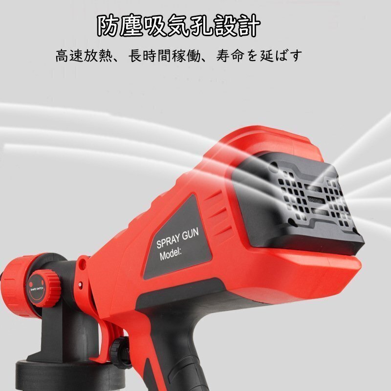 電動スプレーガン 吸上式 吹き付け式 塗装機 大容量1000ml 油性水性噴霧 5セリのバッテリー*2+充電器*1+プラスチック製タンク+ノズル*3