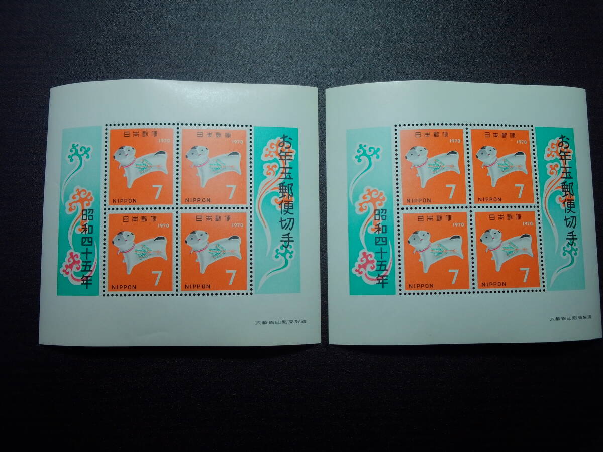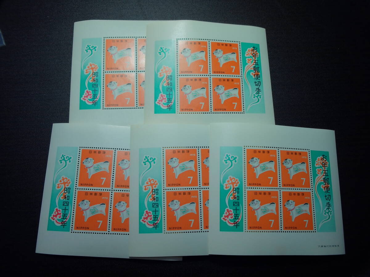 年賀切手   まもり犬   5シート1セット   極美品に近い美品    カタログ値1250円   昭和44年用