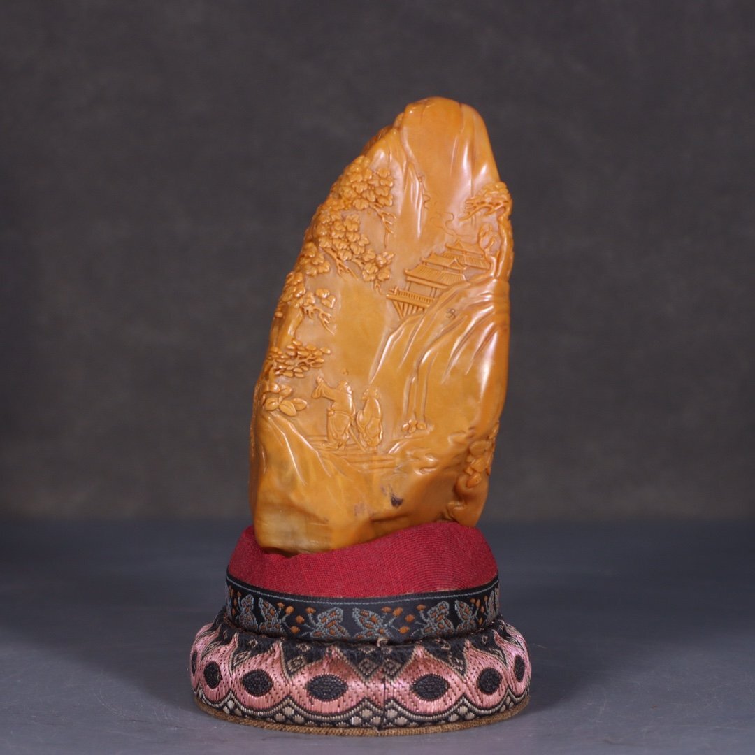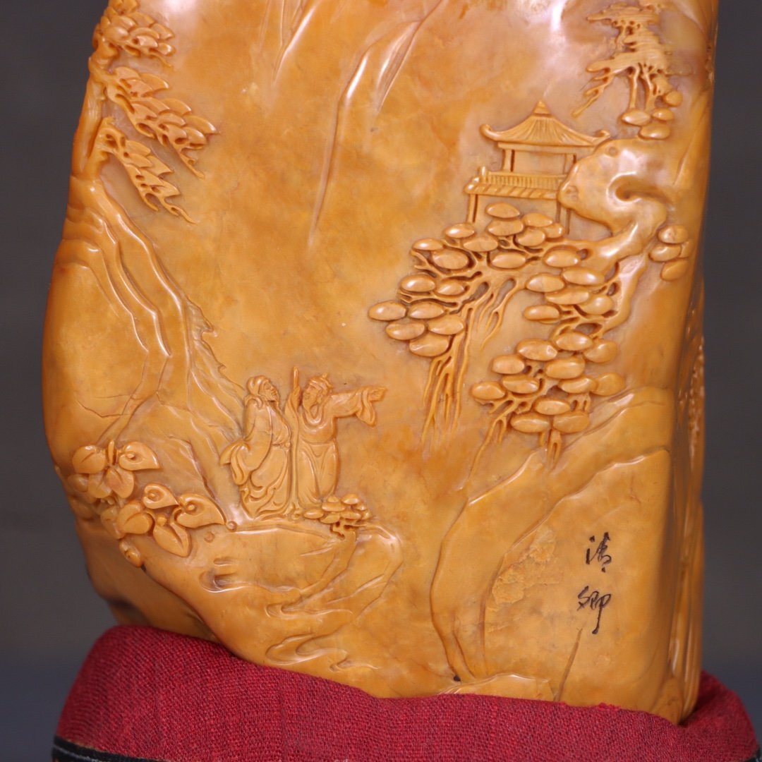【安】清時代 清卿銘 寿山田黄石彫 人物故事図山型置物 共箱 極細工 古擺件 中国古美術 時代物 307 サイズ(約寸) |