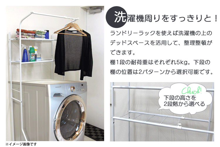 洗濯機の上部空間を有効活用できるランドリーラックです。