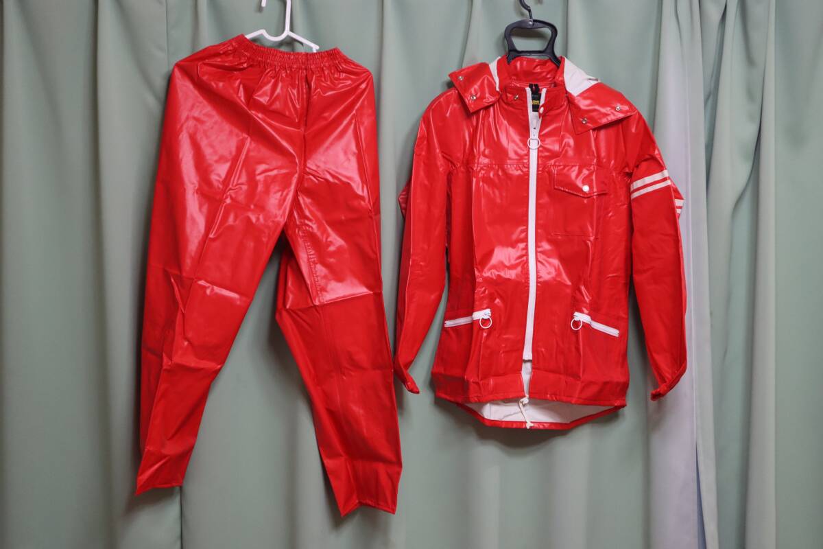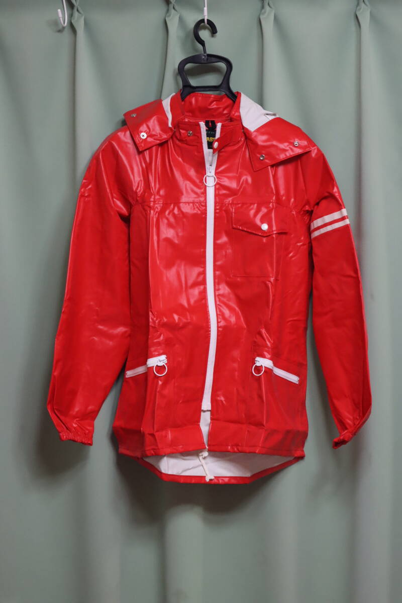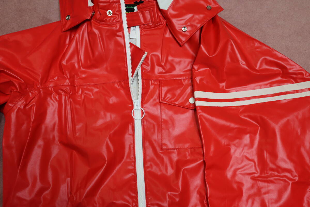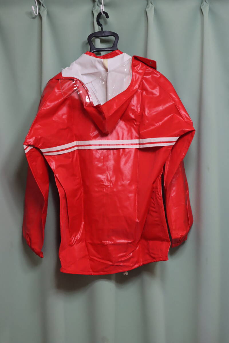 | ☆レトロ 光沢ゴム引き レッド レインコート合羽上下 M☆ |