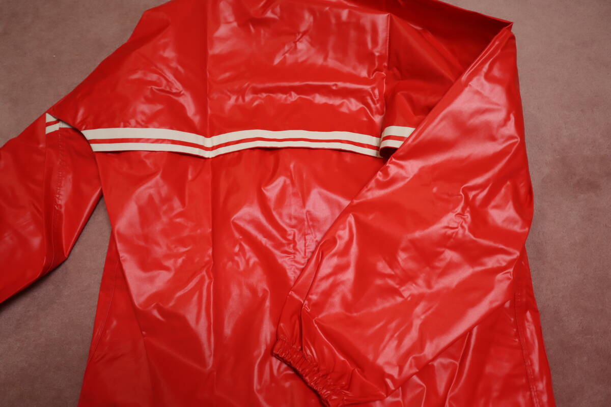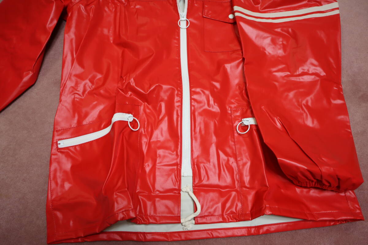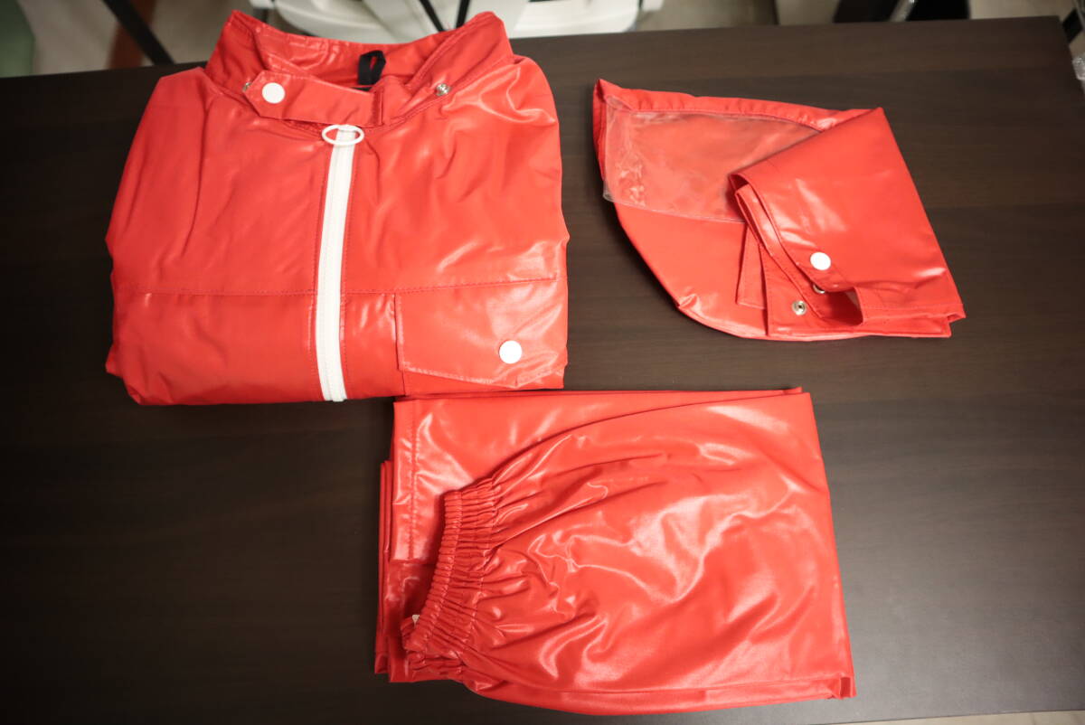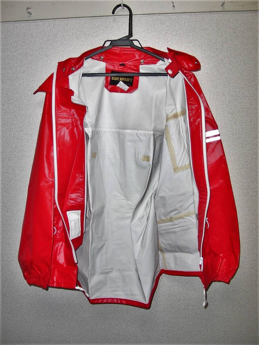 | ☆レトロ 光沢ゴム引き レッド レインコート合羽上下 M☆ |