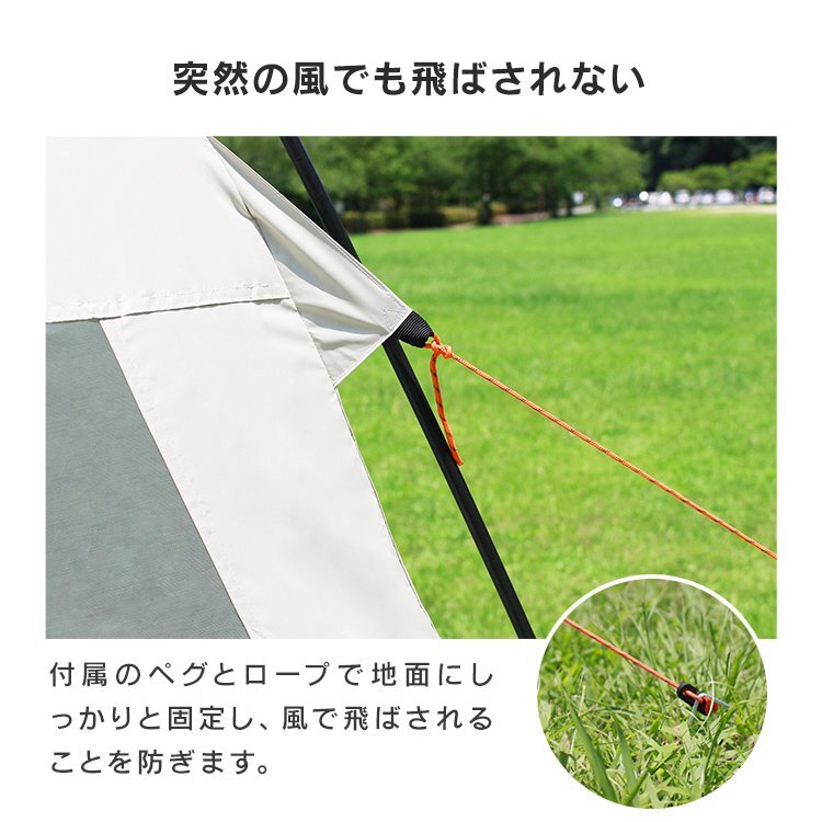 空間が広がるキャノピー型テント サンシェードのようにテントの出入口を日差しから守ったり空間を拡張したりと シーンに合わせた空間つくりができます コンパクトに収納できるので持ち運びも便利です ■広々としたテント内空間! 大人3人がゆったりくつろげる広々としたテント内部 天井も高く立ったまま活動ができるほど余裕あります ■虫も防ぐ全面メッシュ 風を通しながら虫の侵入を防ぐメッシュスクリーン、 ファスナーで簡単に開閉することができます。 ■シルバーコーティングで暑さ軽減! テント内部にはシルバーコーティングを施し強い紫外線でも テント内を心地よく保つことができます 【商品仕様】 カラー:ホワイト 商品内容: 本体用ポール2本、キャノピー用ポール2本、ペグ12本、ロープ8本、収納バッグ1点 サイズ: 使用時:(約)幅215cm×奥行215cm×高さ170cm 収納時:(約)20cm×60cm 重量:(約)4.7kg 材質:グラスファイバー 【注意事項】 ・テント生地には撥水加工が施されていますが、雨天・豪雨下での完全防水を保証するものではございません。 ・風速5m以上の風の吹く場所でのご使用は転倒や破損の原因になります。 ・設営の際は、2人以上で丁寧に作業を行い、しっかりと固定してください。乱暴に扱いますと、故障や破損の原因になります。 ・海外製品で、簡易梱包での輸入のため風防に擦れや多少の小キズなどがある場合がございますが、 商品自体には問題ありませんのでご了承下さい。 ・商品は、モニターによって色合いが異なって見える場合があります。 ・仕様・デザインは改良のため予告なく変更することがあります。 |