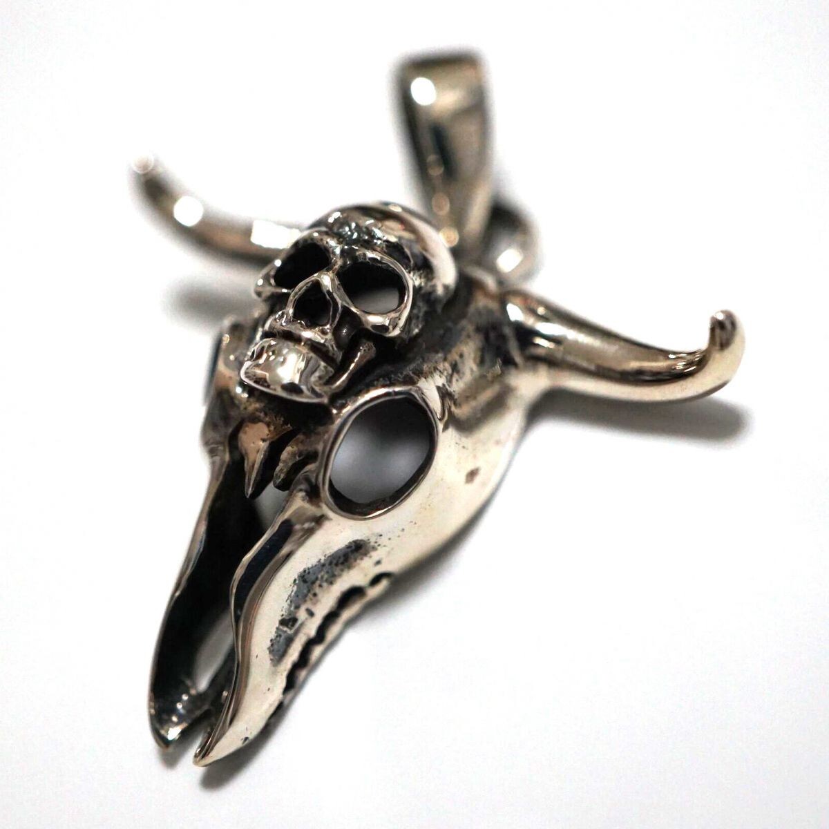 | シルバーネックレス 925 ヘッド ヘット 銀 本物 メンズ silver ペンダント チャーム トップ スカル 牢獄 地獄 hell death 重量感 魂ソウル 海賊 骨 十字軍 クロス 重量級 闘牛 牛 s5232 | ||||||||||||||||||||